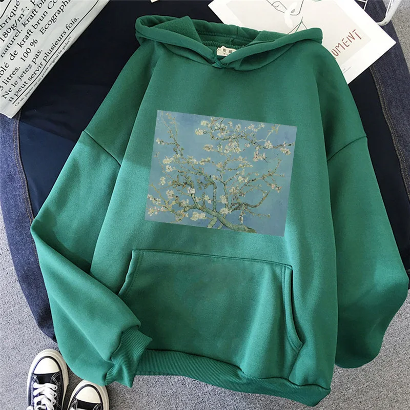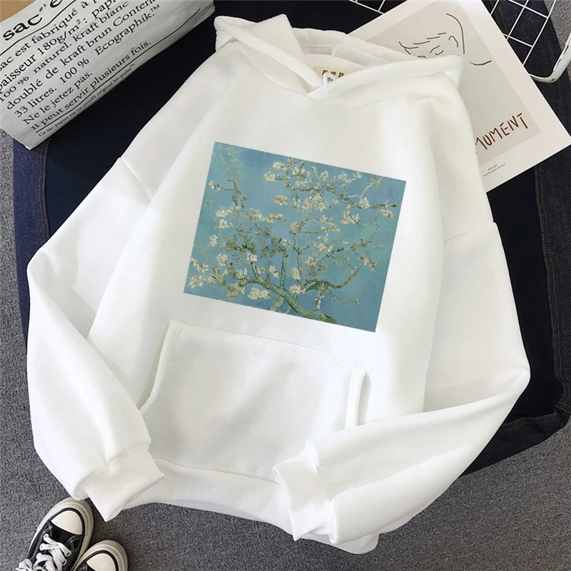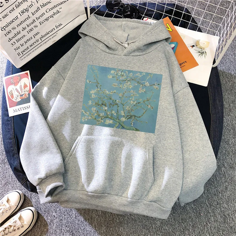 Женская толстовка в стиле Харадзюку, повседневный свитшот в стиле хип-хоп, свитер с картиной Ван Гога маслом, зимняя теплая одежда с длинным рукавом