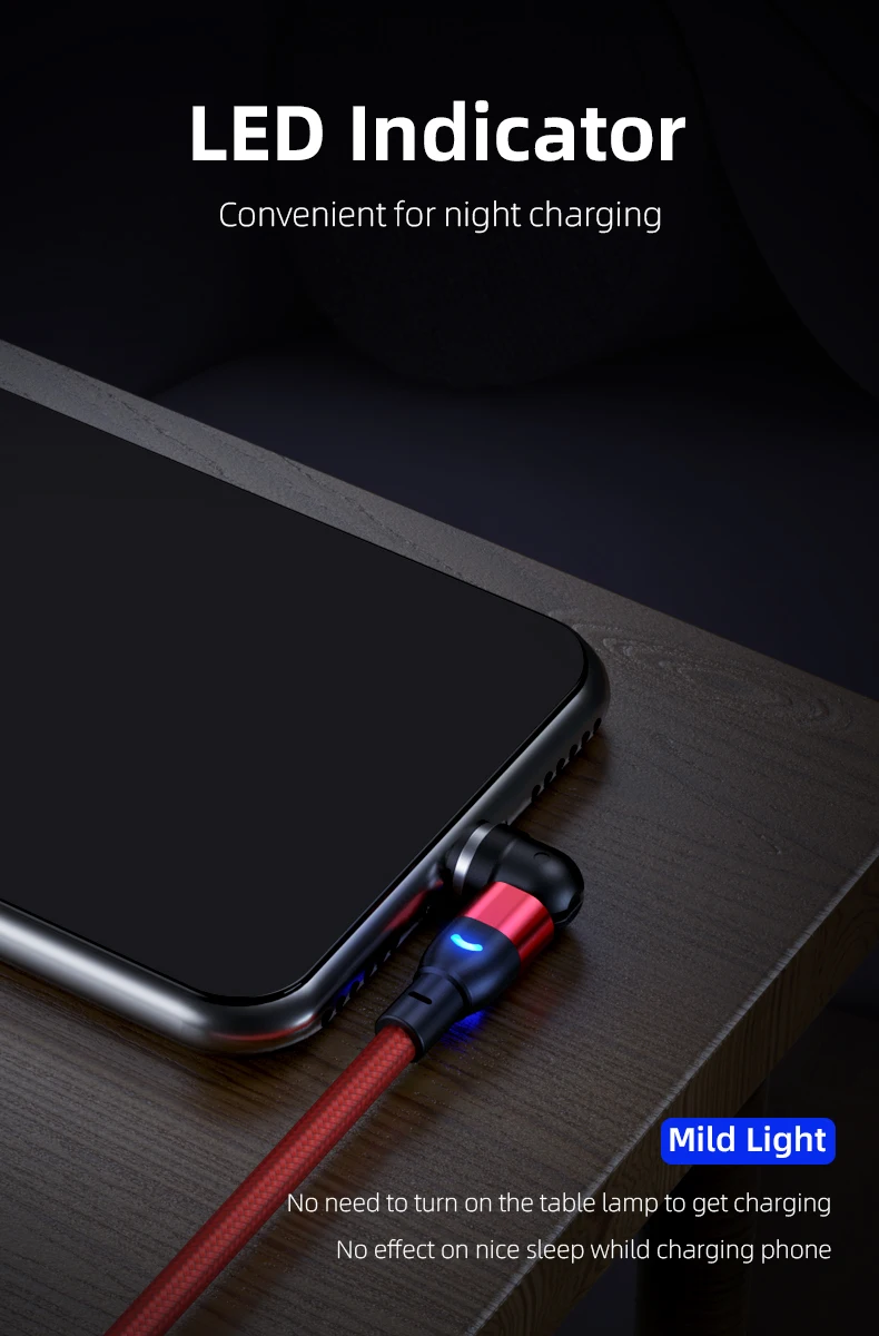 Магнитный USB-кабель 90 градусов, светодиодный Micro USB Тип C, зар...
