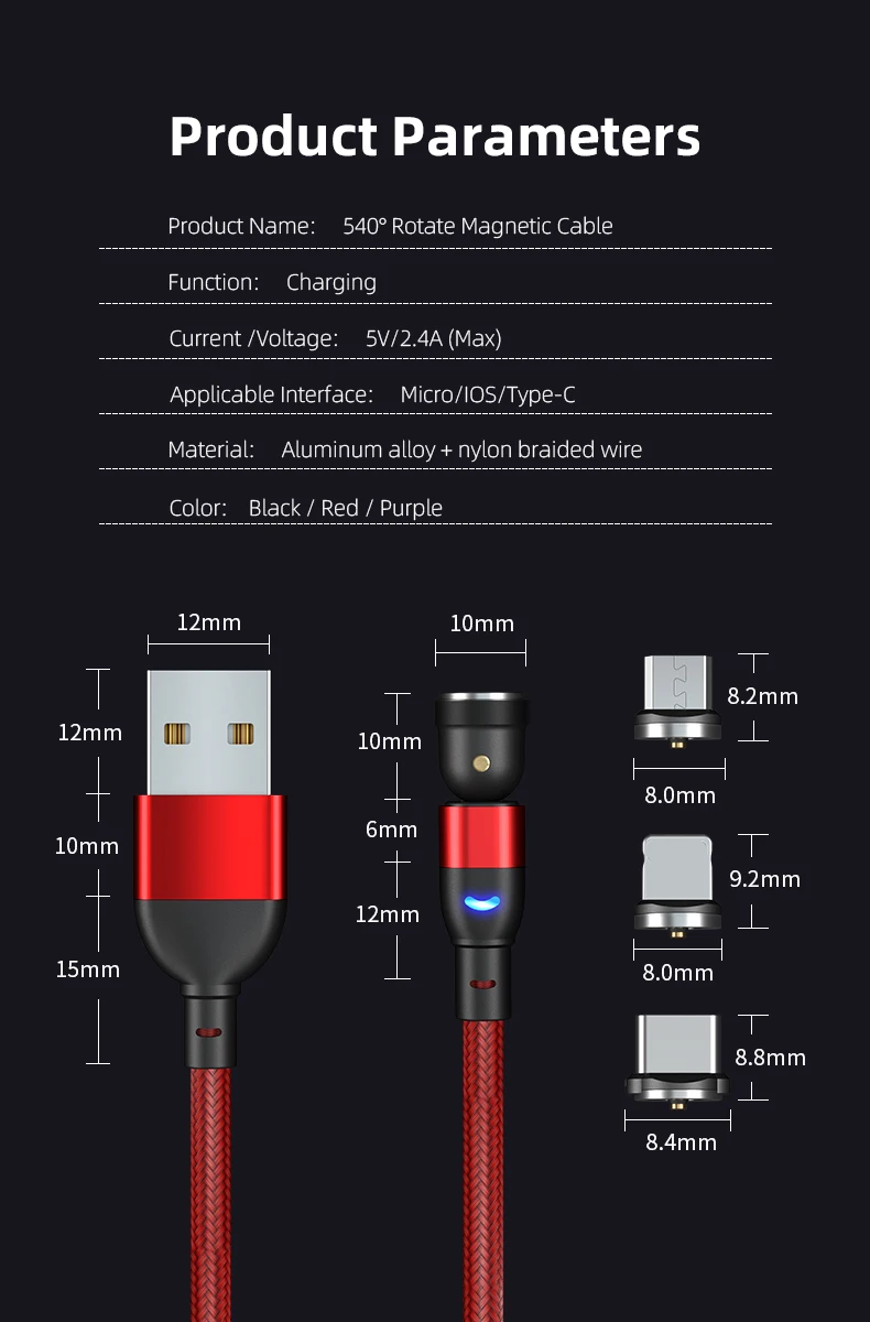 Вращающийся на 540 градусов Магнитный кабель Micro USB для Xiaomi 1...