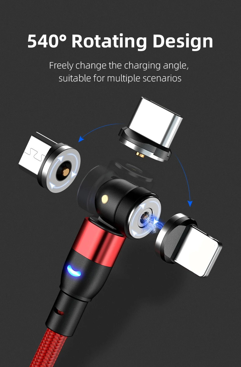 Магнитный кабель с поворотом на 540 градусов Micro USB Type-C, кабель для быстрой зарядки для iPhone Xiaomi Redmi 9A 9C Note 10 9 8 7 Pro, шнур Мобильный телефон
