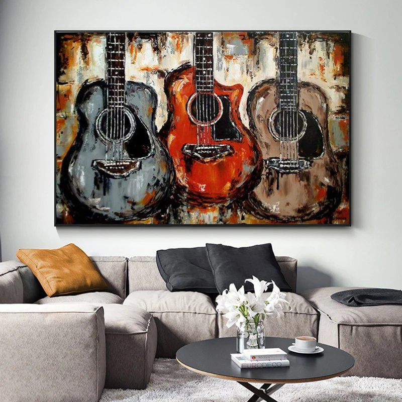 Современная Настенная живопись, холст, коллекция гитар, музыкальных...