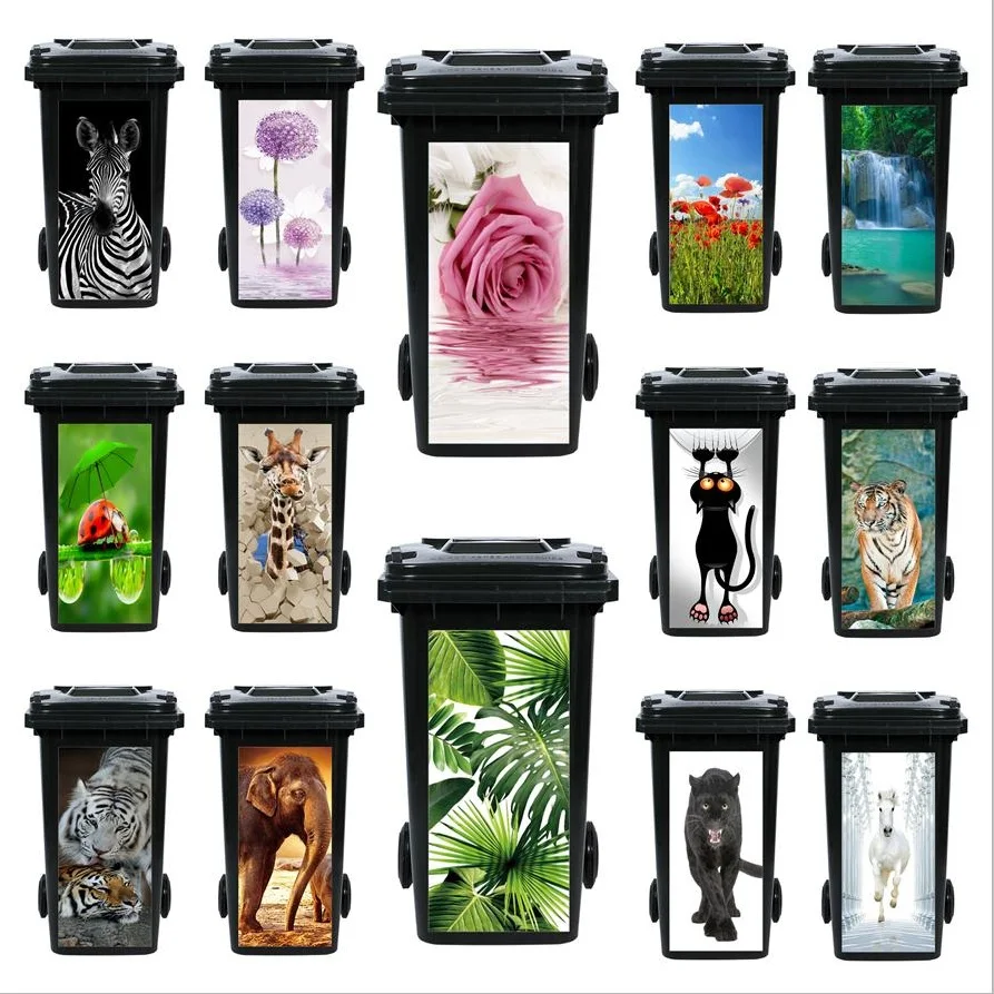 3D самоклеящаяся наклейка на мусорную корзину с животными, наклейка на стену, наклейка на стену с изображением цветов для домашнего декора