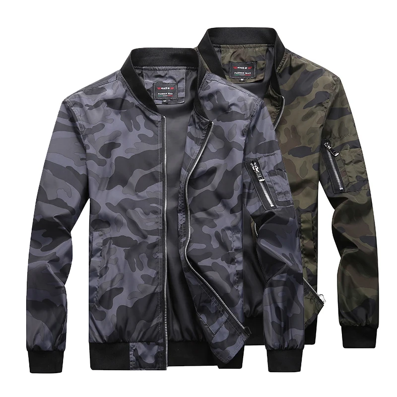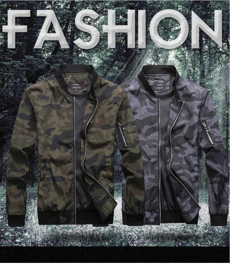 Модная мужская куртка-бомбер, осенняя ветровка, Мужская Уличная одежда, камуфляжные куртки на молнии, повседневная спортивная бейсбольная форма