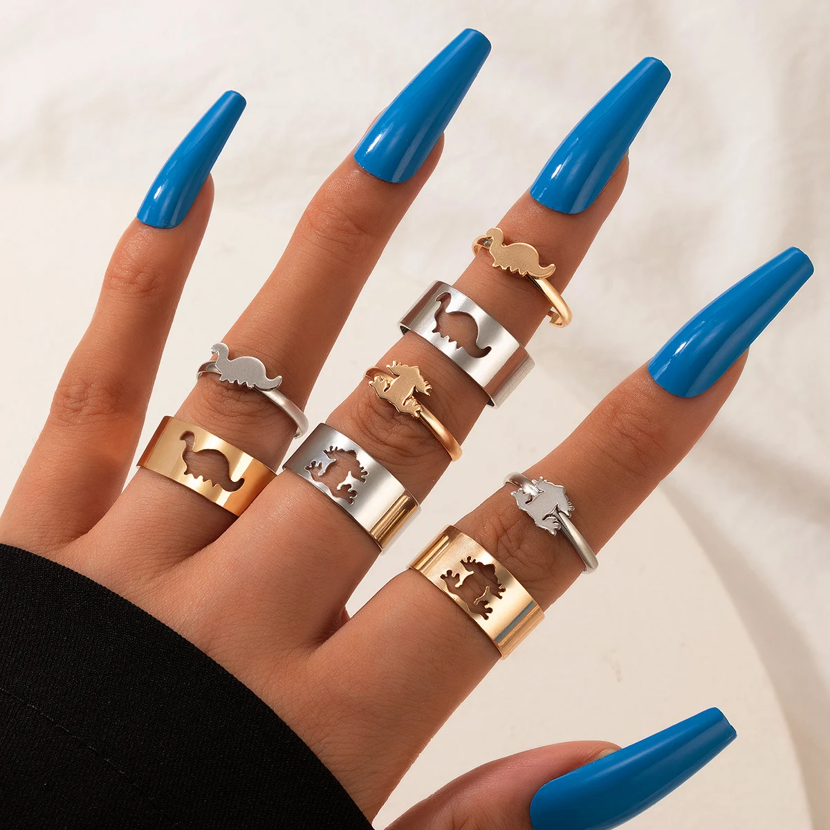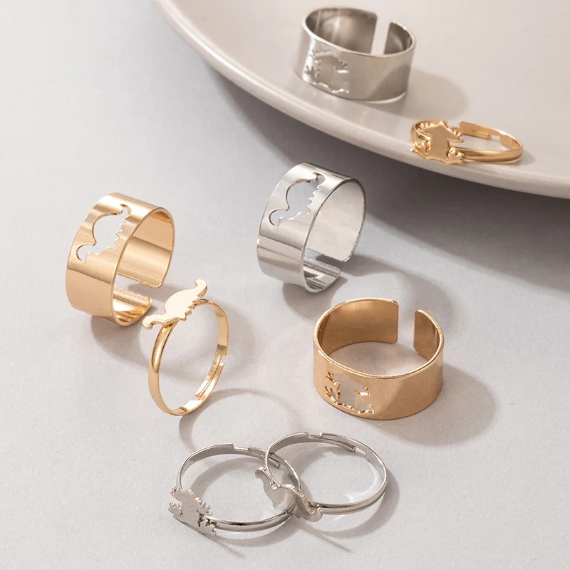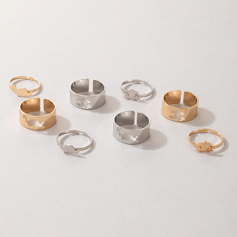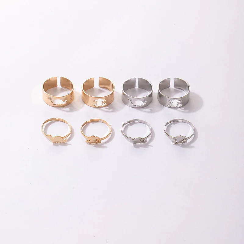 Набор Колец docona, 4 шт.компл., Симпатичные кольца с лягушкой, динозавром, для женщин и мужчин, модные геометрические регулируемые свадебные украшения, 20630