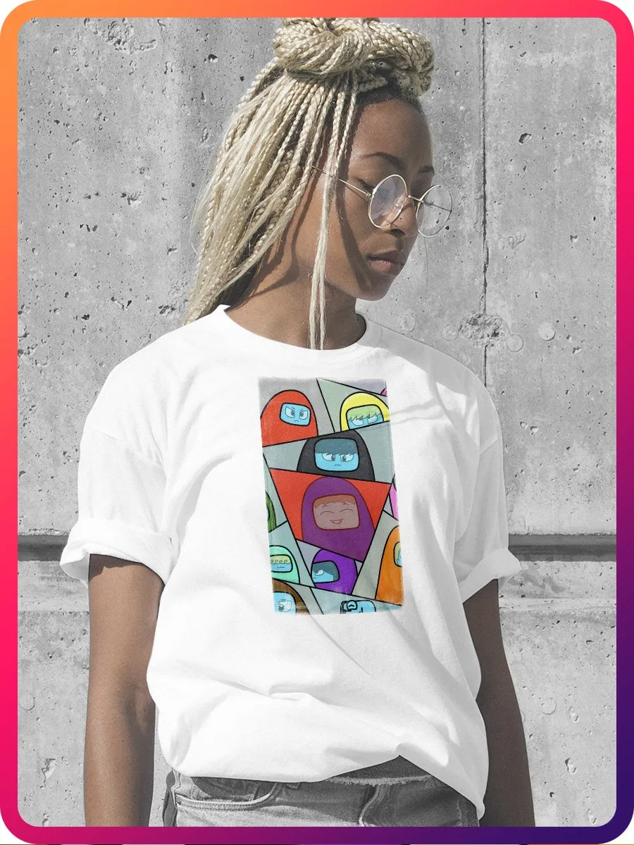 Женская футболка белая Among Us (Амонг Ас, Play, Sabotage, Space, Игра, Игры, космос, персонаж, ) 9805