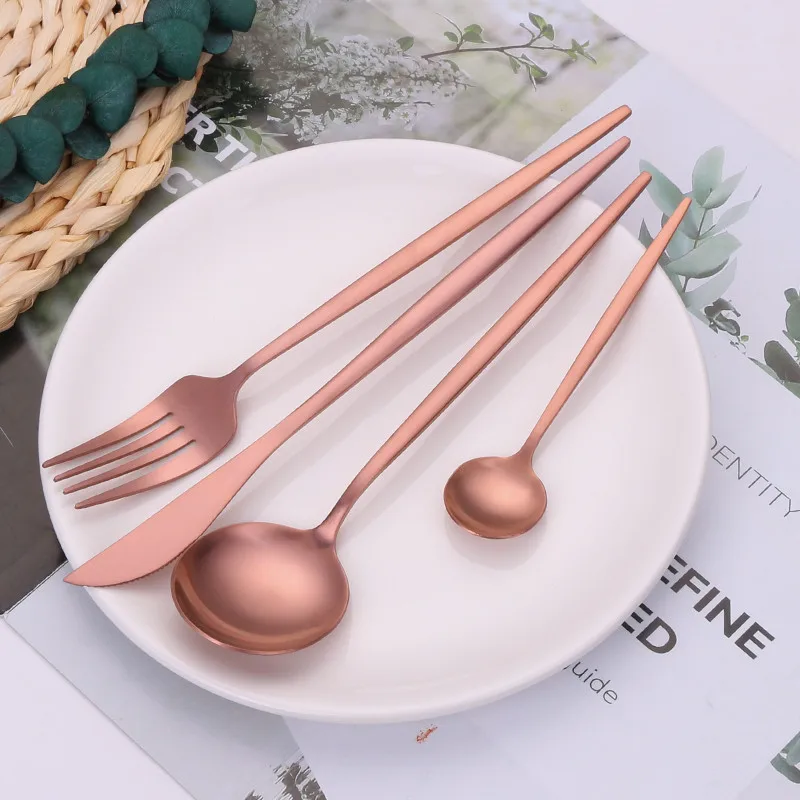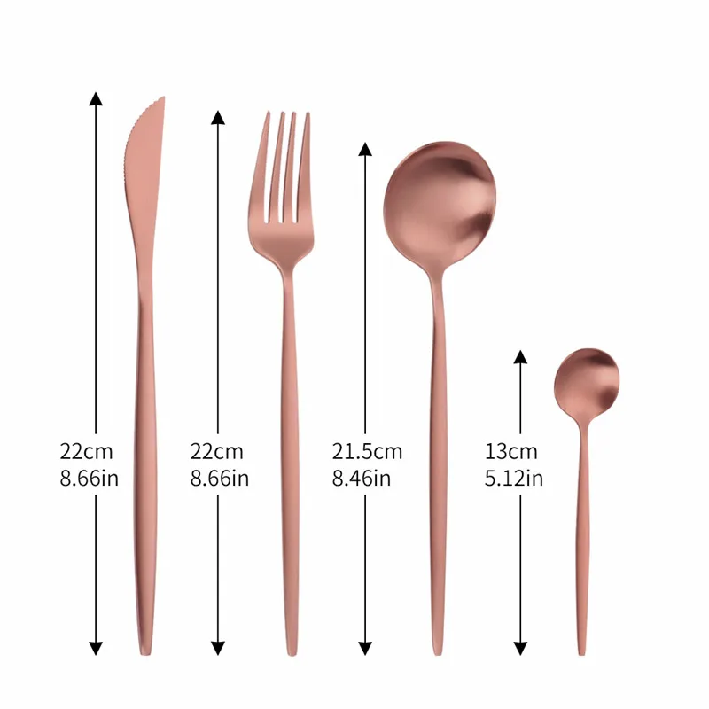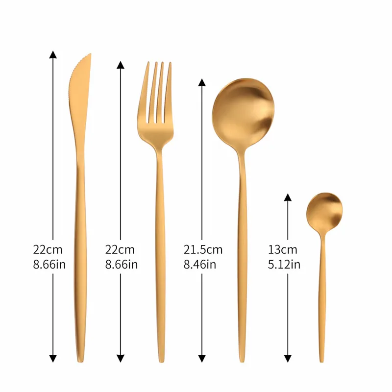 Полностью 4 шт. в наборе, 1 × Dinne нож + 1 × столовая вилка + 1 × столовая ложка + 1 × чайная ложка