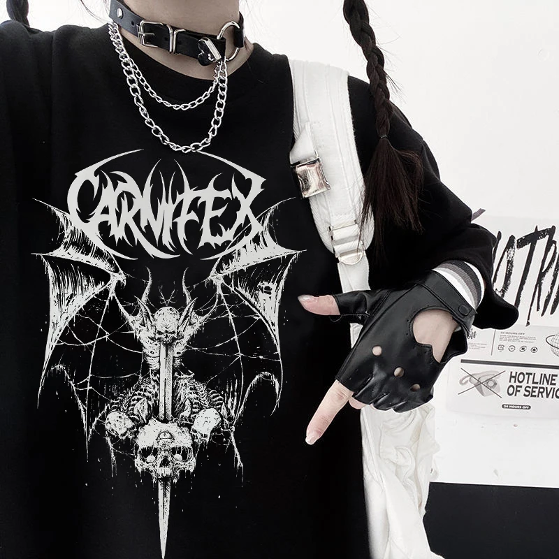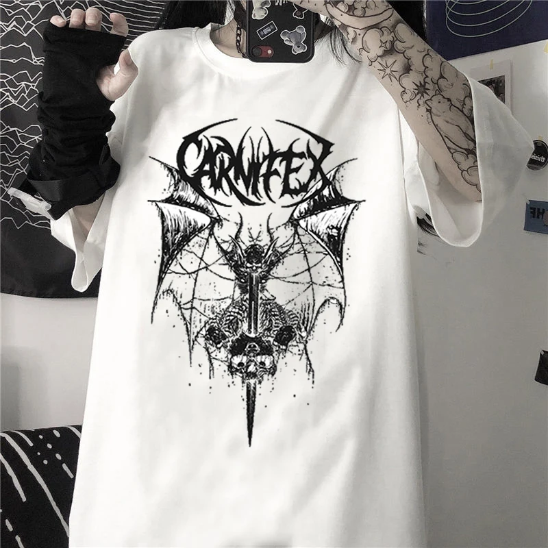 Футболка женская в стиле Харадзюку, топ в стиле Харадзюку, в корейском ретро стиле, с принтом черного демона, в стиле панк, готика, с аниме