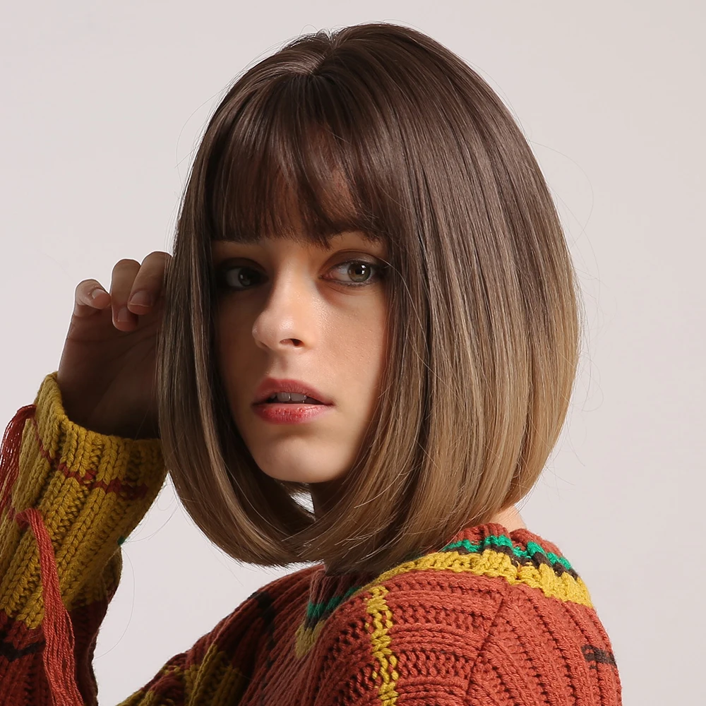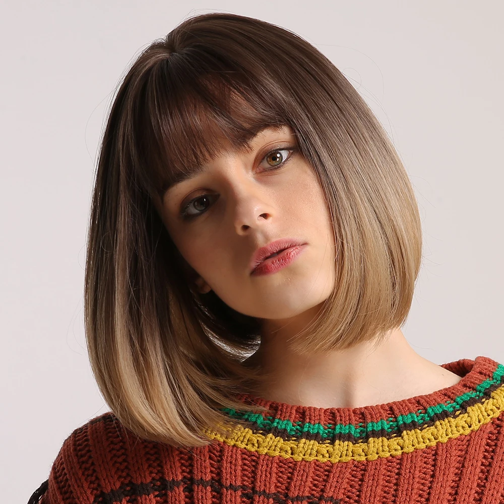Женские синтетические парики с короткими прямыми волосами, с челкой