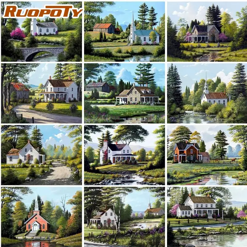 RUOPOTY Рамка DIY Раскраска по номерам картина по номерам пейзаж на...