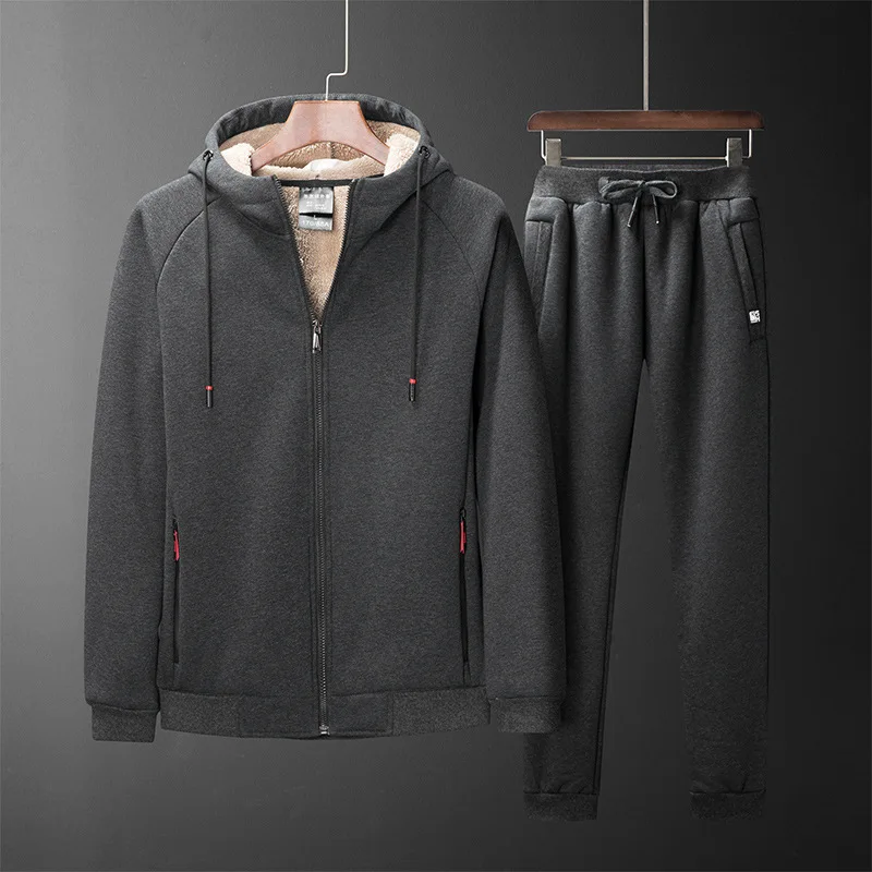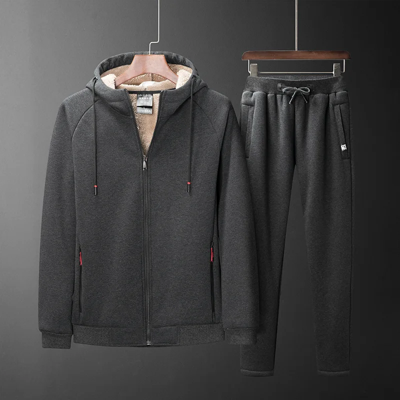 Мужской спортивный костюм, новинка 2021, осенне-зимний Повседневный флисовый бархатный костюм с капюшоном, хлопковое кашемировое пальто с капюшоном, кардиган, толстовка размера плюс