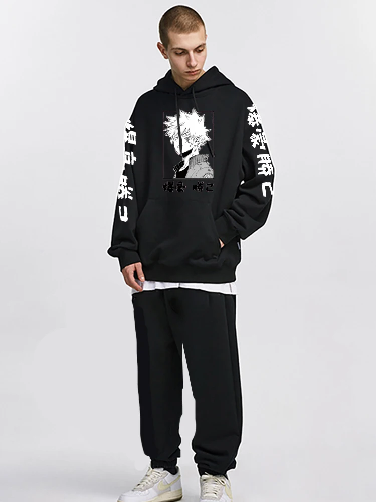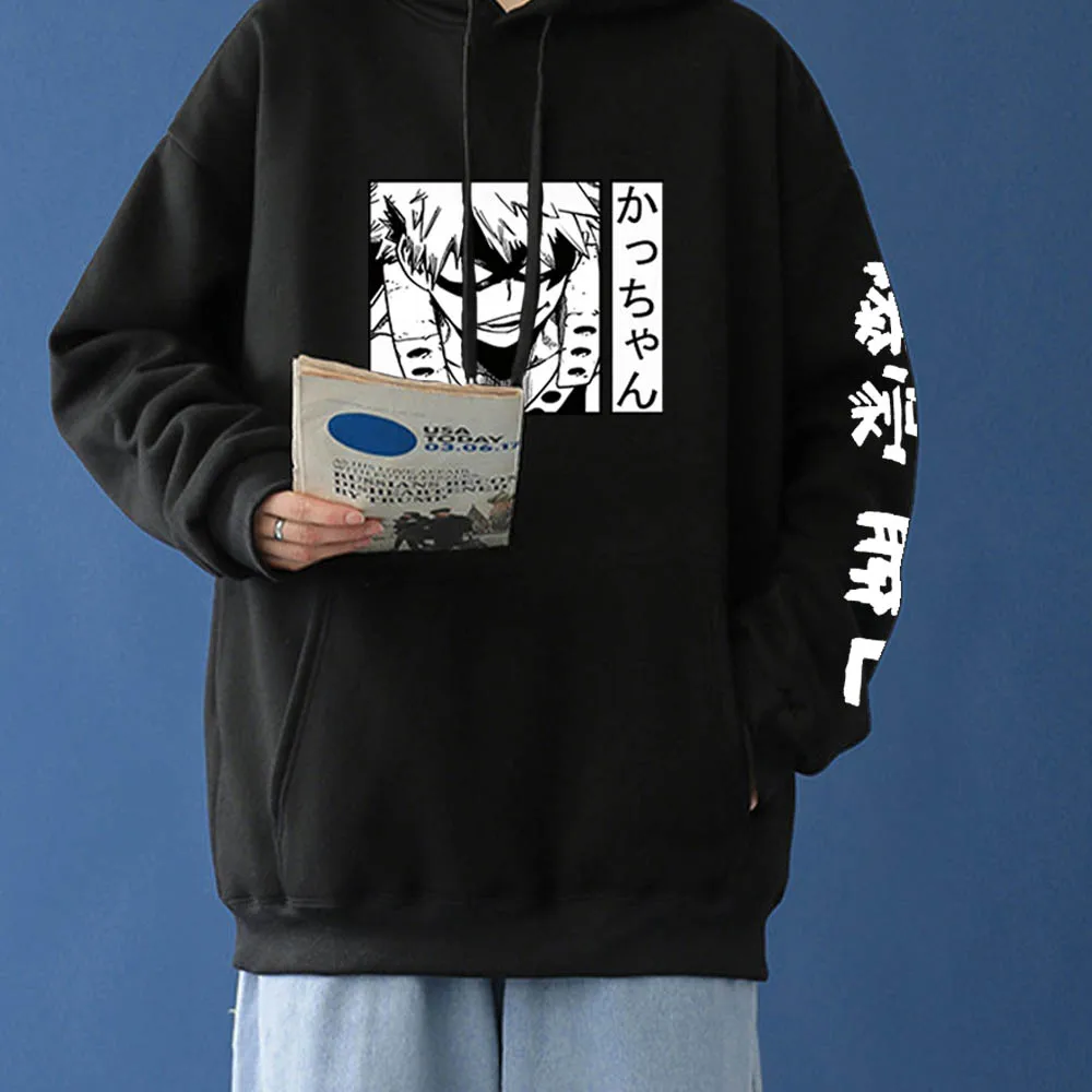 Толстовка Оверсайз с капюшоном и принтом героев мультфильма Моя геройская Академия, уличная одежда Bakugo, свитшот, мужская одежда с длинным рукавом в стиле хип-хоп, пуловер