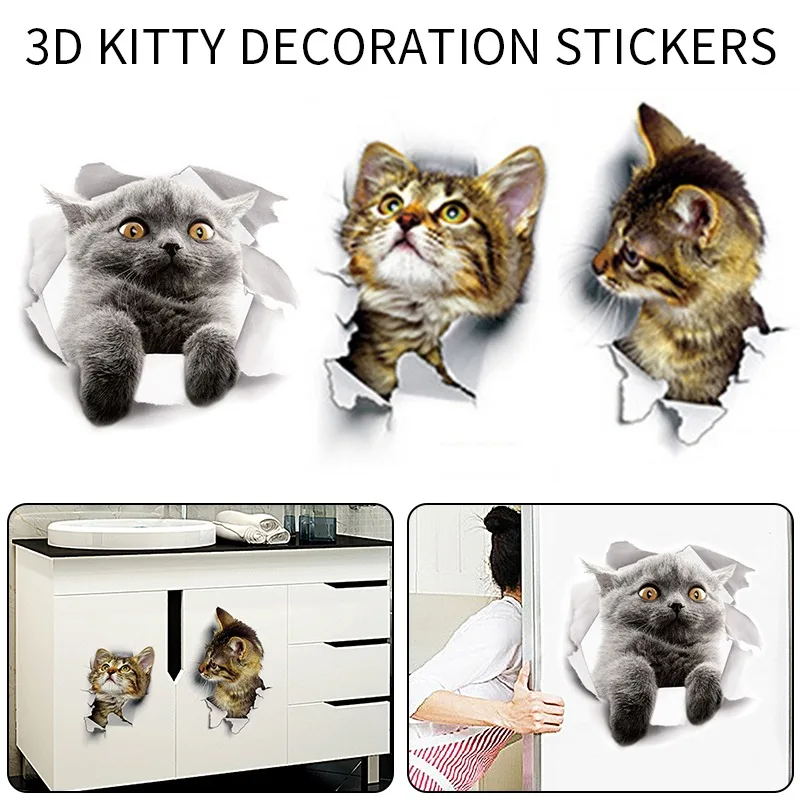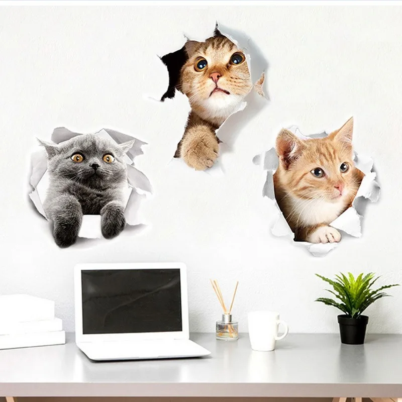 Милый 3D стикер на стену с кошкой Ванная комната туалет Гостиная до...