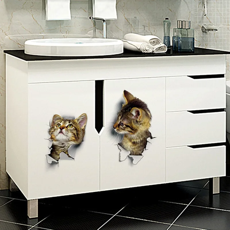 Горячая Распродажа милый 3D стикер на стену с кошкой ванная комната...
