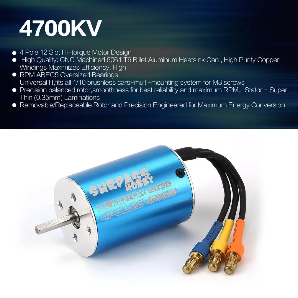 2.Hight quality: CNC machined 6061 T6 Billet aluminum heatsink can,high purity copper windings maximizes efficiency,high RPM ABEC5 oversized bearings.