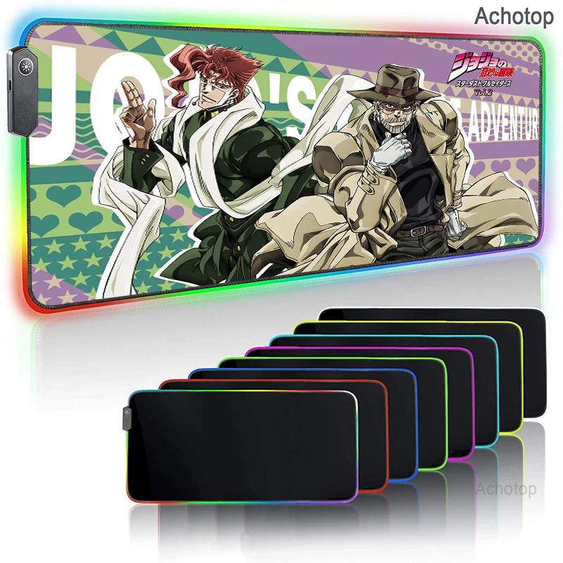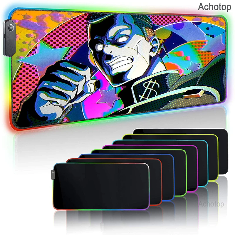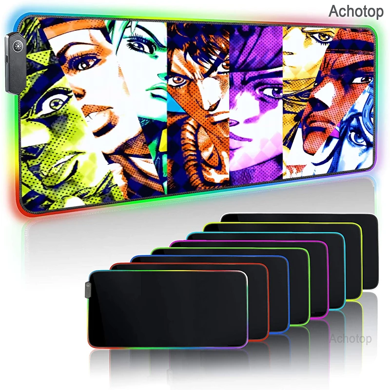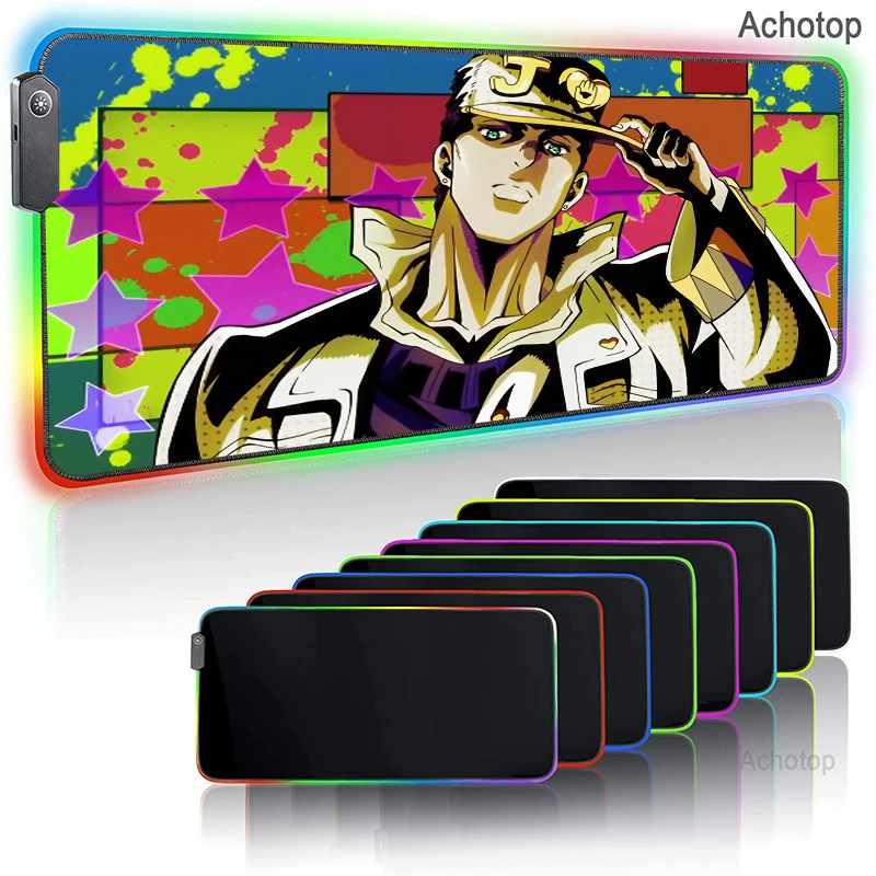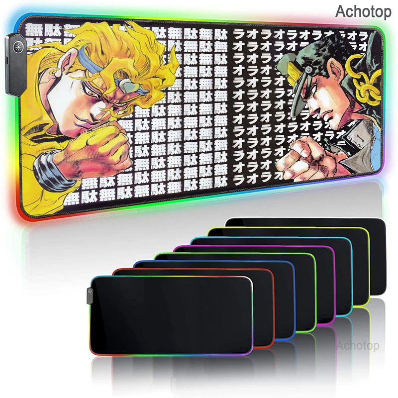 Игровой коврик для мыши Jojo по мотивам невероятных приключений, очень большой игровой коврик для мыши с RGB-подсветкой, большой скоростной коврик для мыши в стиле аниме, коврик для настольного ПК, коврик для клавиатуры