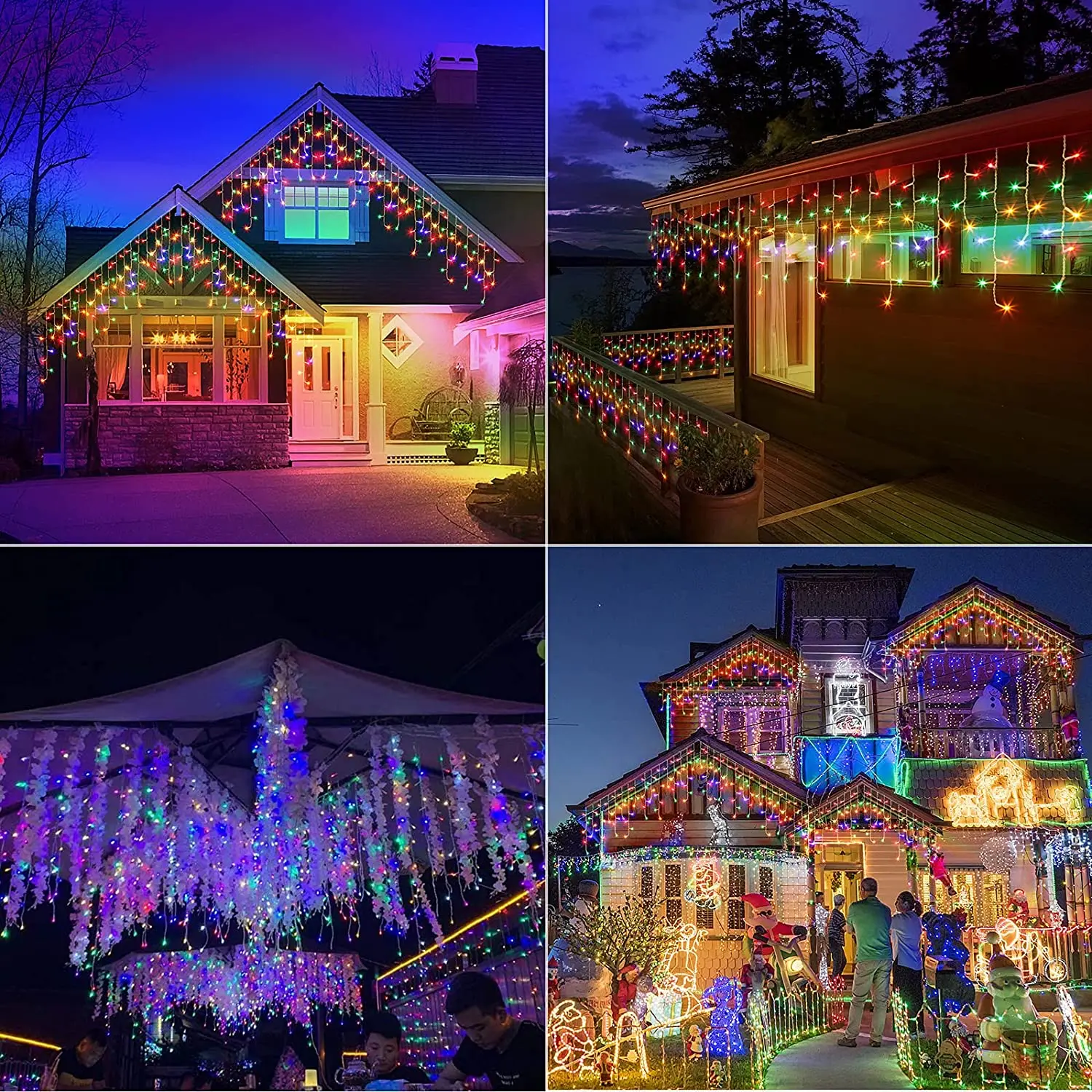 Наружная Рождественская светодиодсветильник Гирлянда-занавеска, гирлянда, Сказочная гирлянда-сосулька, гирлянда-занавеска 4 м * 0,30,6 м с питанием от розетки