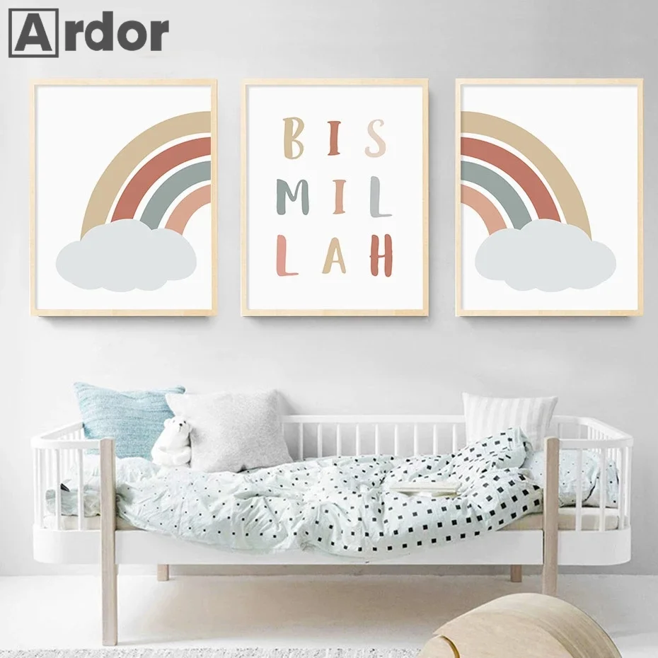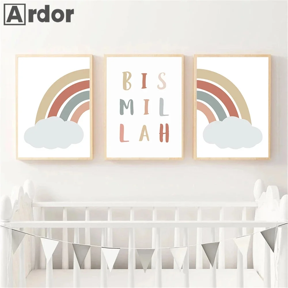 Исламский плакат с цитатами Bismillah, радужная облако, печать, детская комната, настенная Картина на холсте, картины в скандинавском стиле, декор детской комнаты