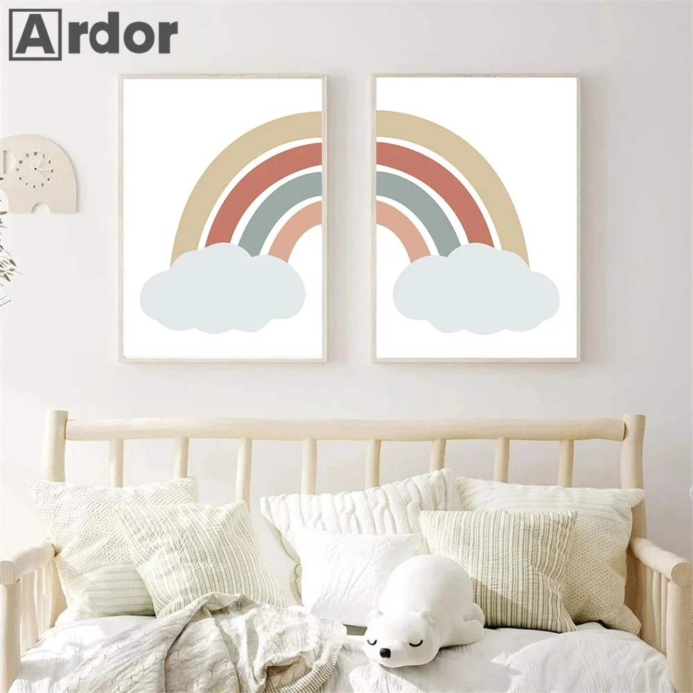 Настенный плакат в скандинавском стиле с радугой солнцем облаком, е...