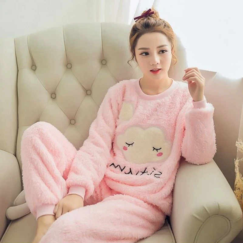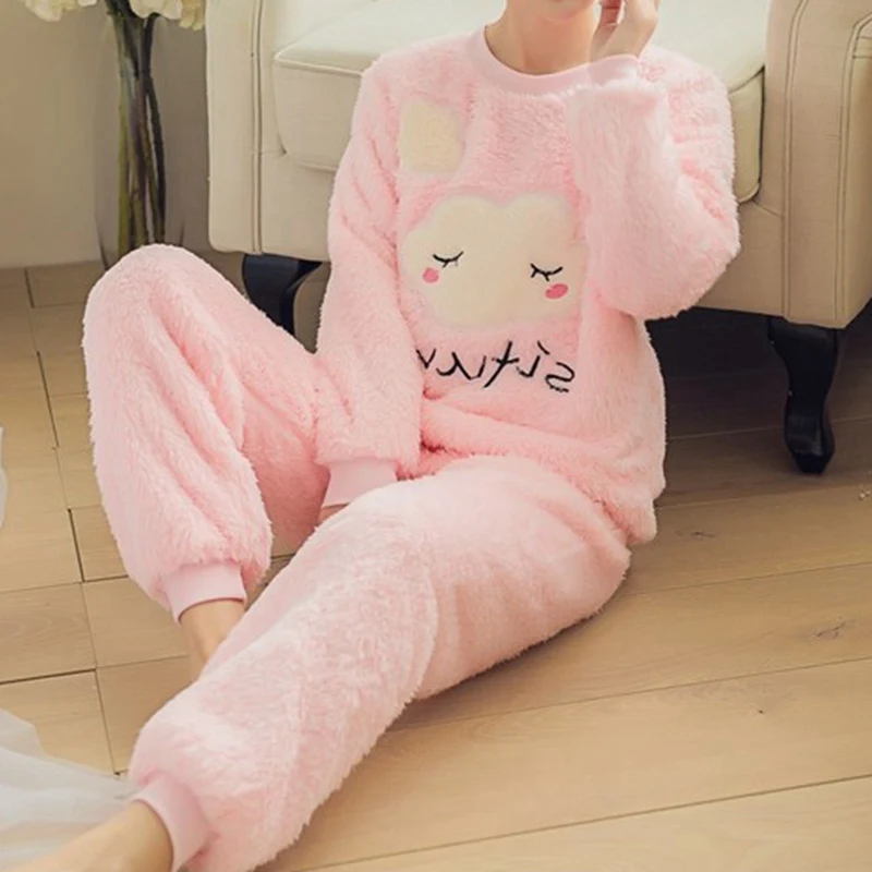 Женский пижамный комплект осень-зима женские пижамы фланелевые пижамы с длинным рукавом женский пижамный комплект Милая женская домашняя одежда для сна