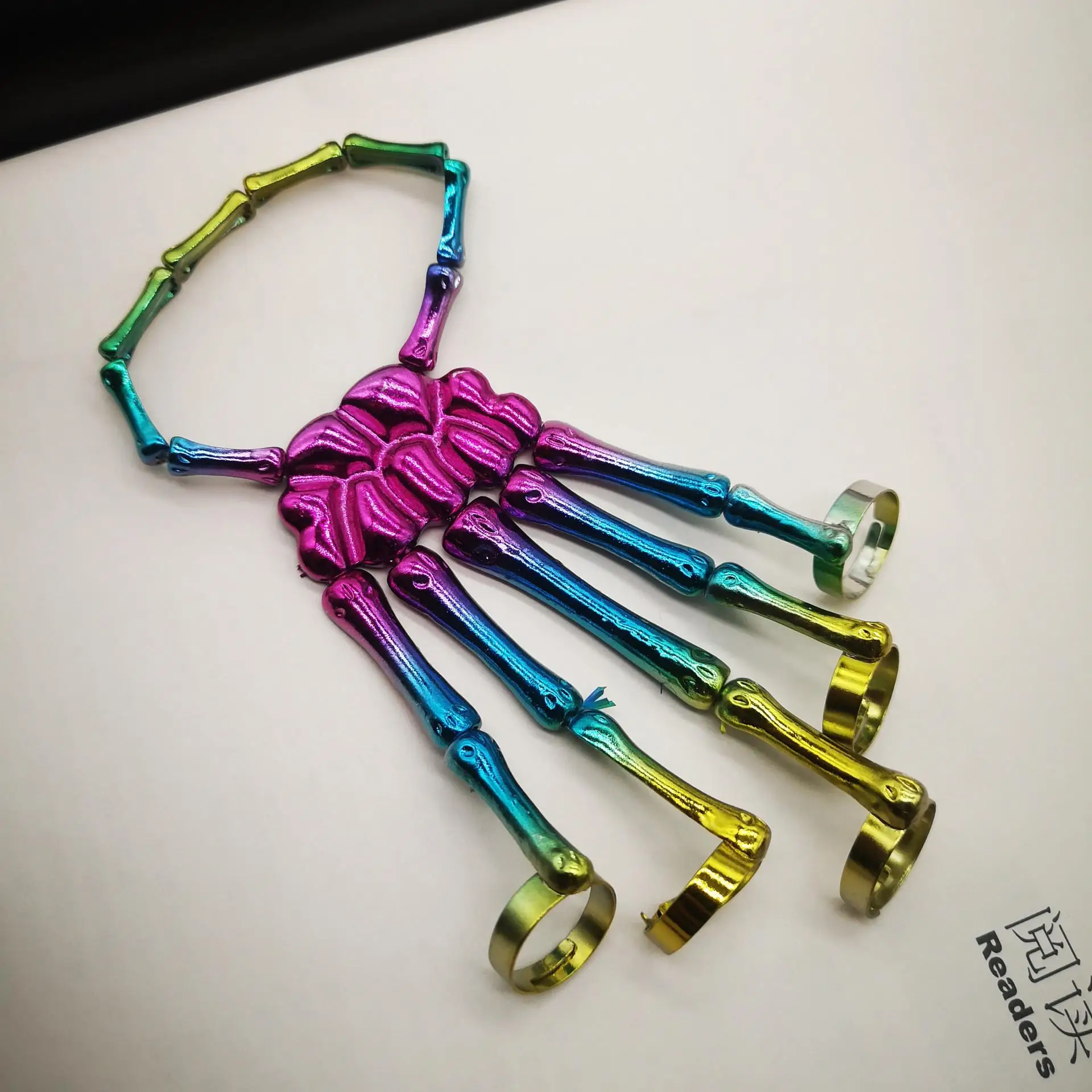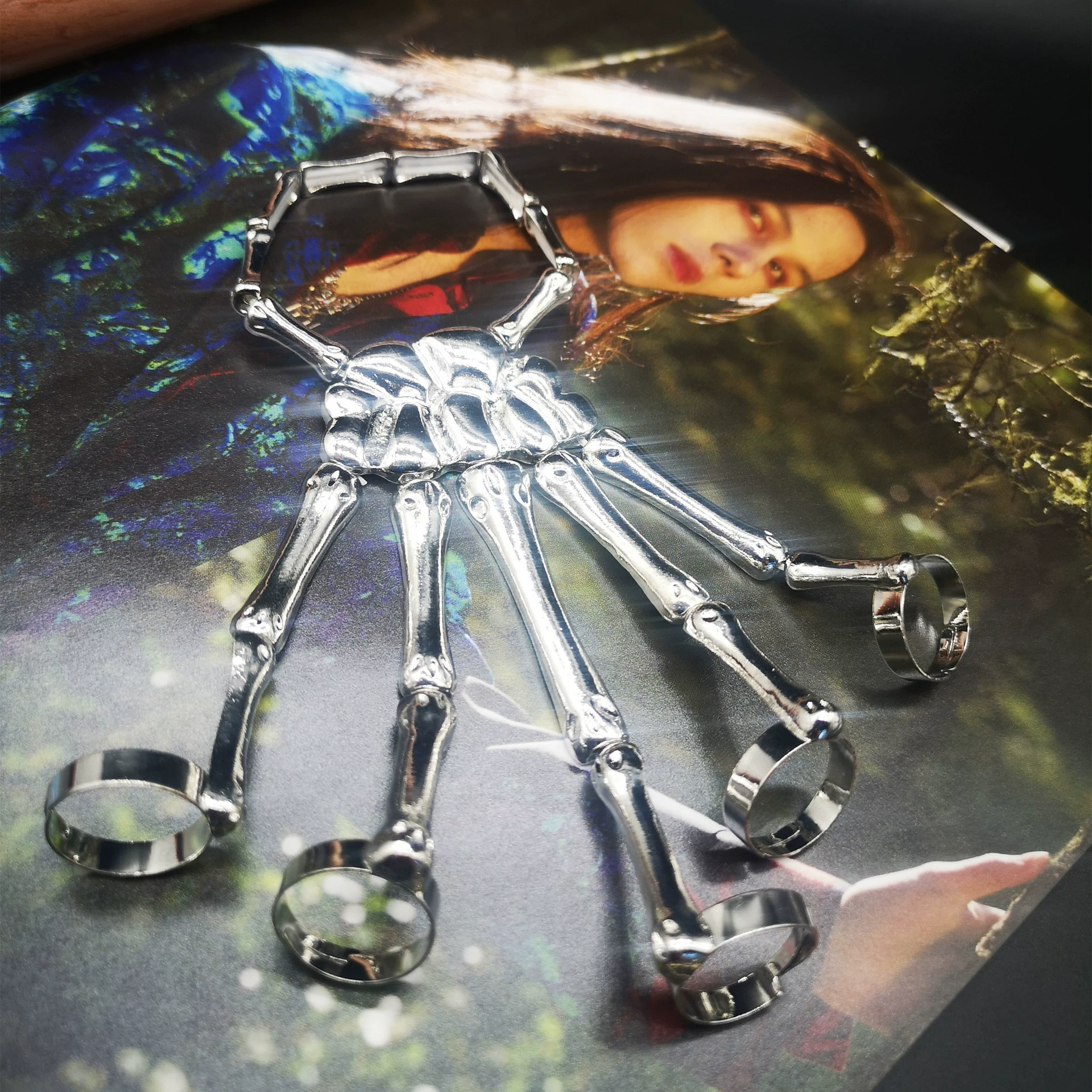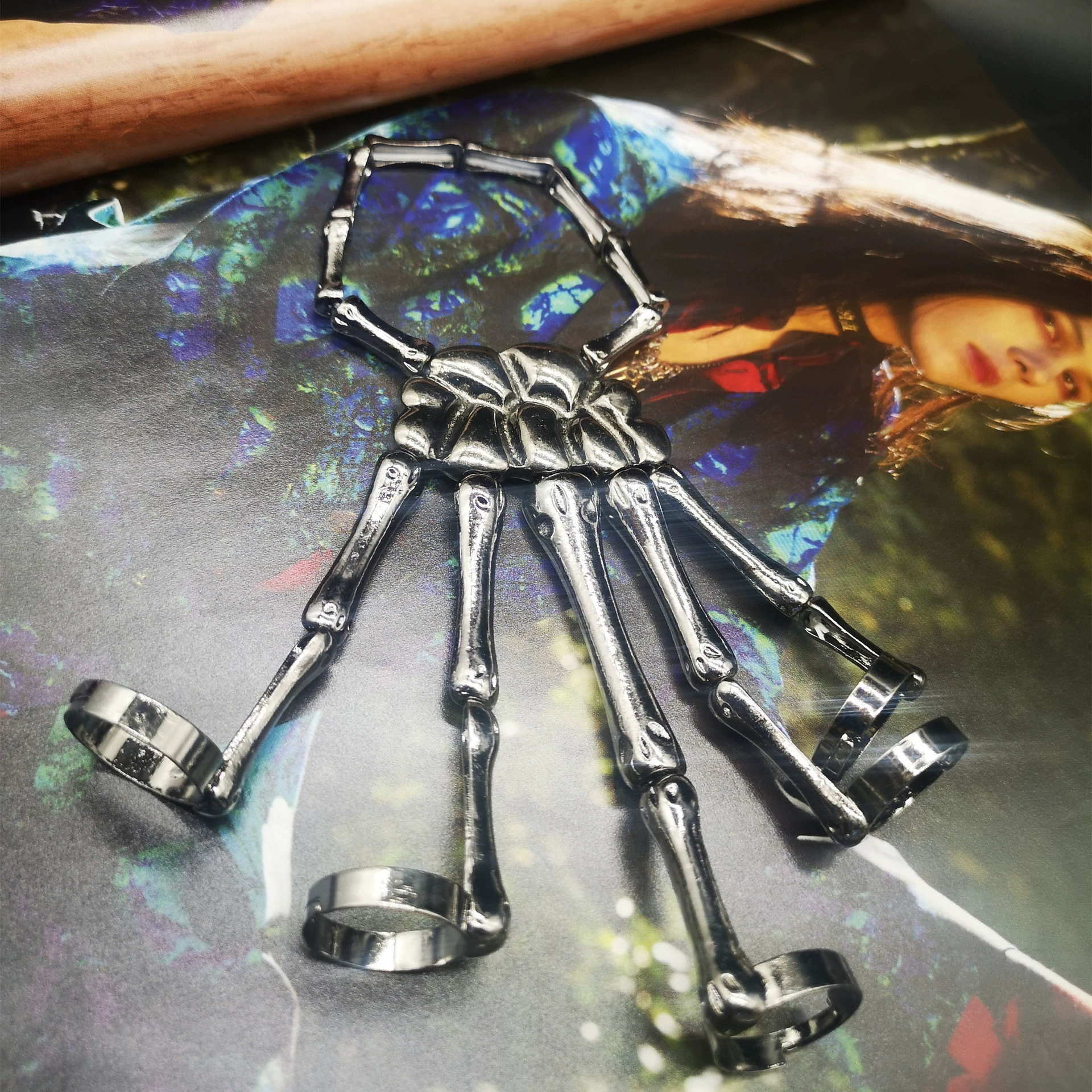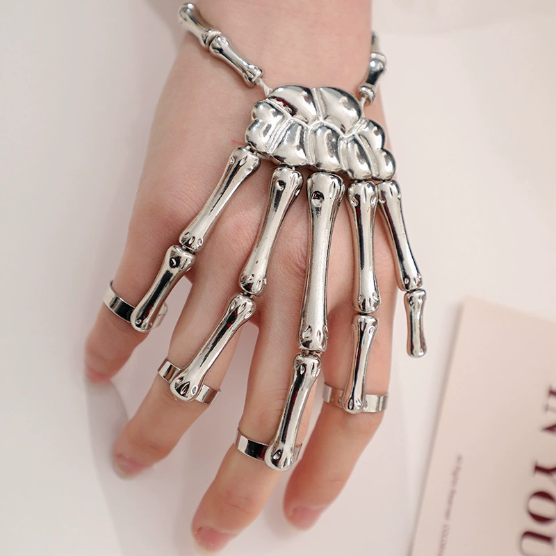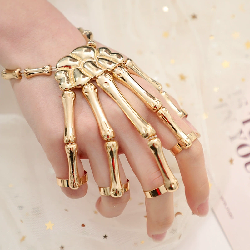 Популярный браслет на Хэллоуин панк преувеличенный Призрак рука скелет браслет металлическая текстура на палец цепь для женщин