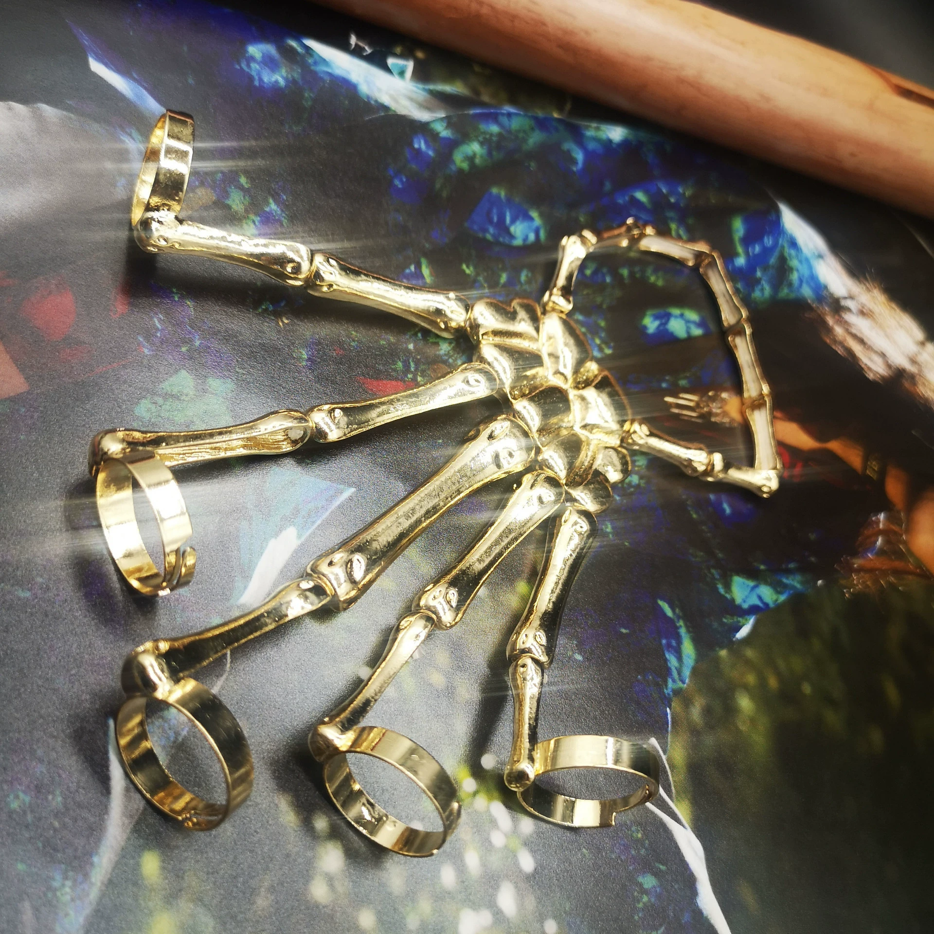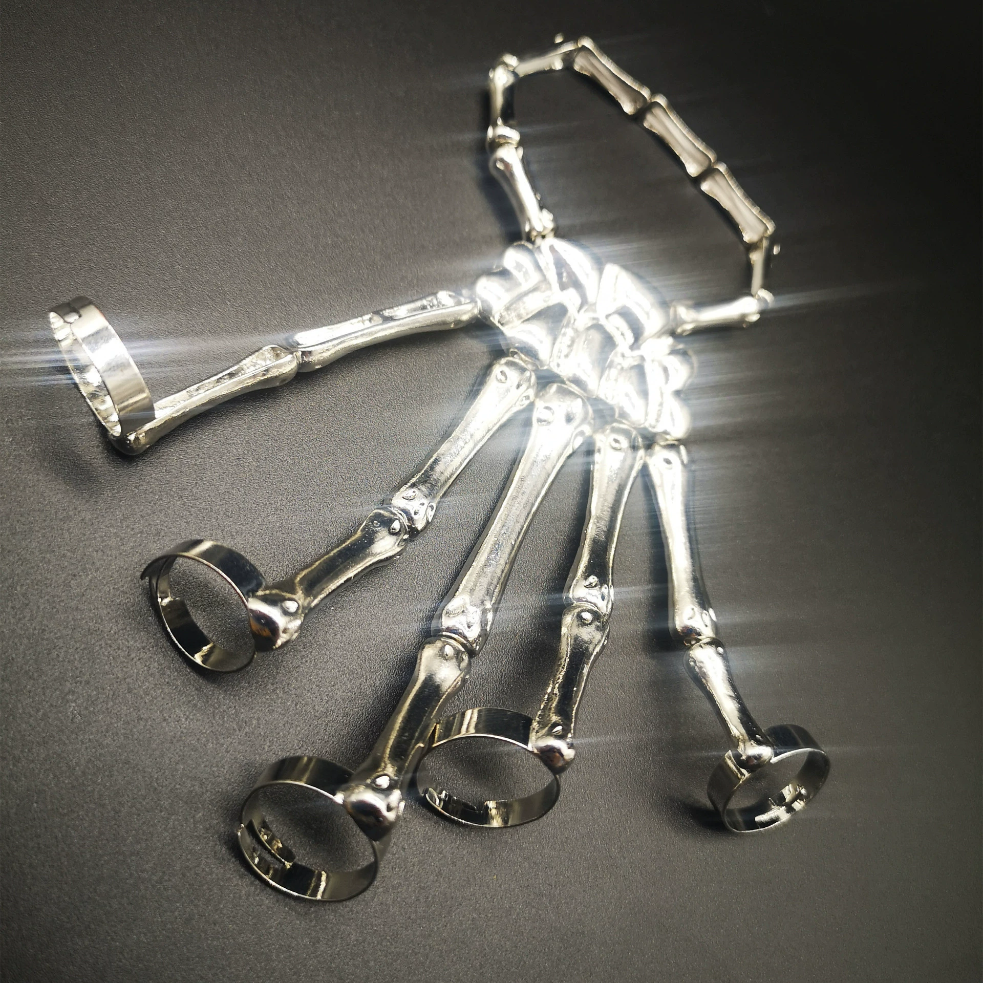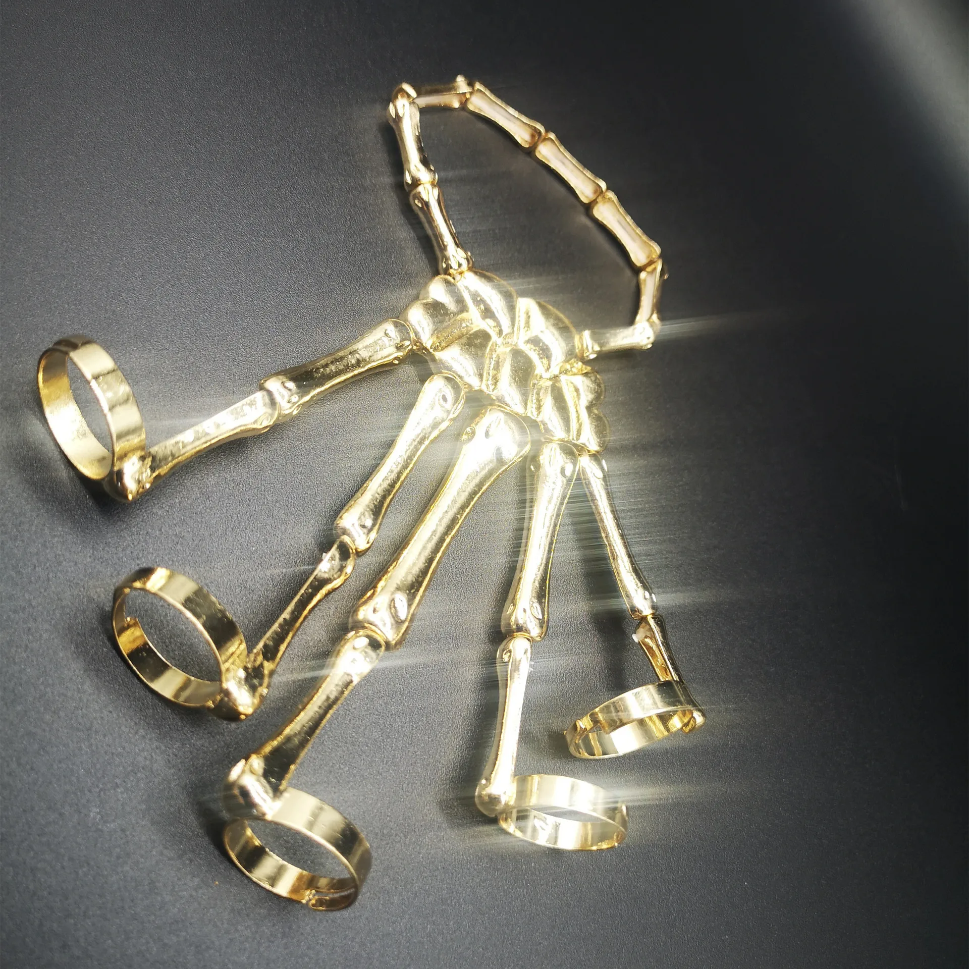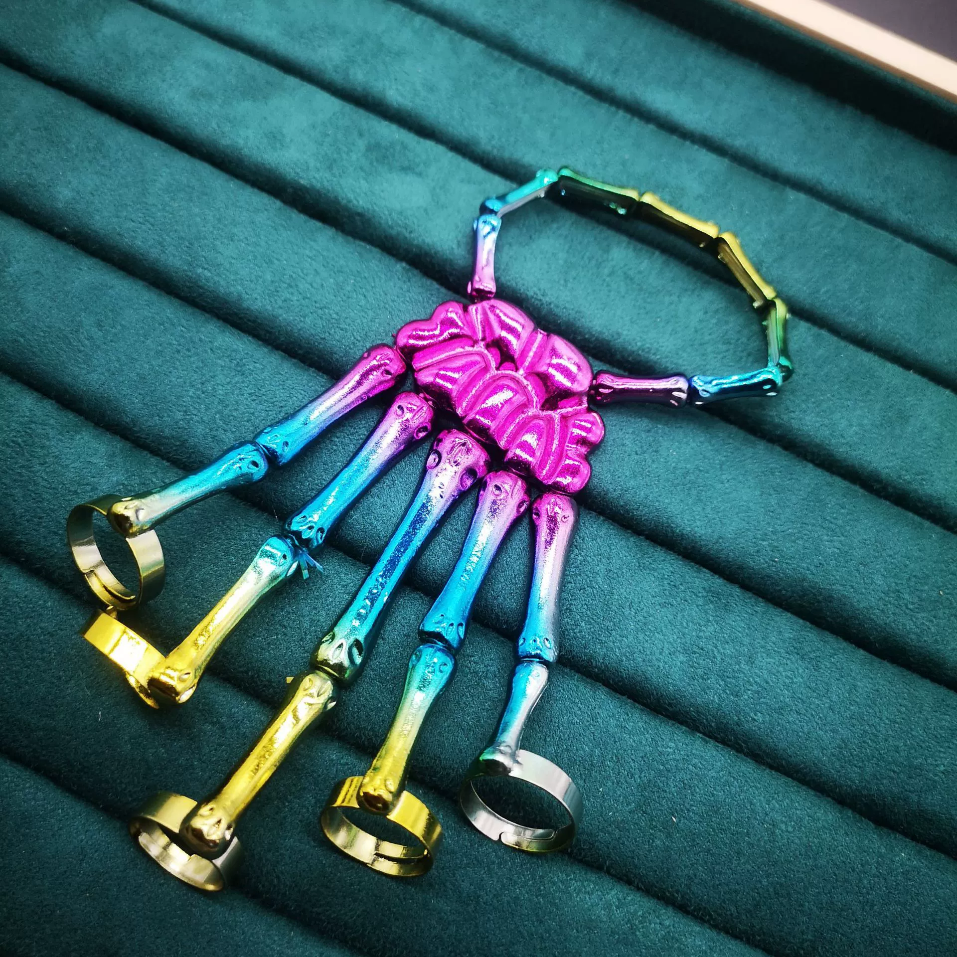 Популярный браслет на Хэллоуин панк преувеличенный Призрак рука скелет браслет металлическая текстура на палец цепь для женщин