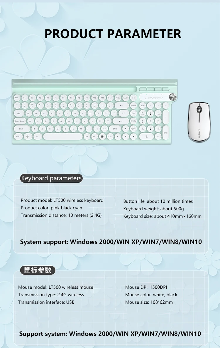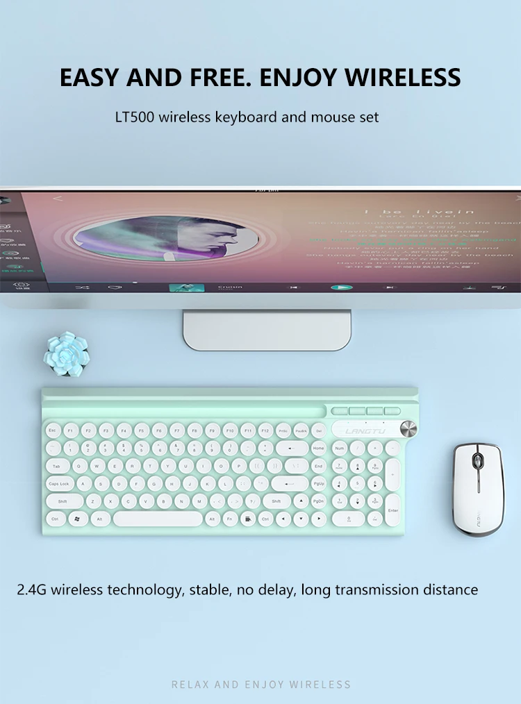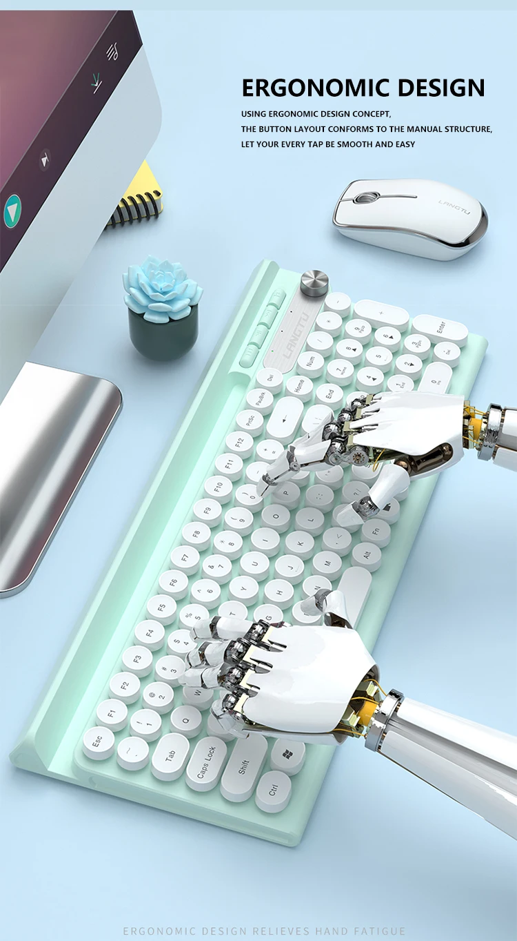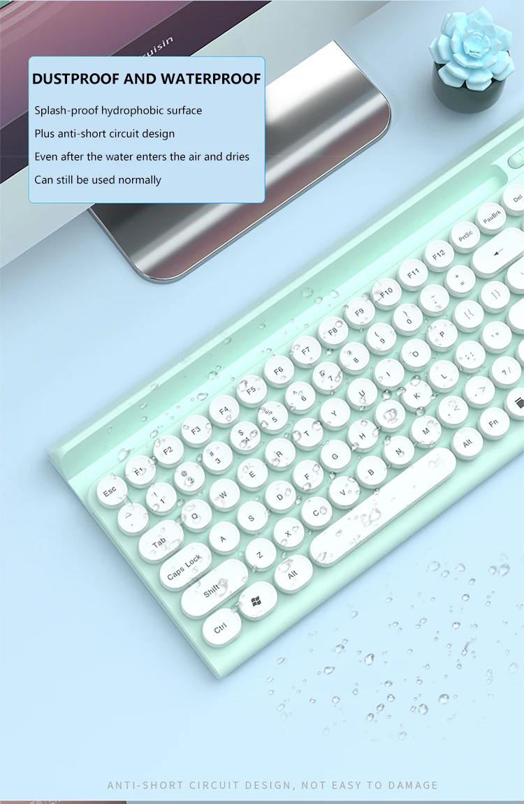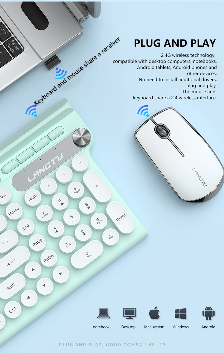 ● Беспроводная технология 2,4G, стабильная, без задержек, Дальняя передача● Изысканный опыт работы с основными технологиями, девять функций точки доступа подарят Вам комфортный опытУмная Ручка plug and play, водонепроницаемый и пыленепроницаемый, панк-брелок, бесшумный дизайн, эргономика, умный сон, стильный внешний вид● Интеллектуальная ручка с использованием технологии гальванической металлической поверхности для увеличения трехмерной красоты продукта-ключ для управления громкостью компьютера, легкий, удобный и удобный● Plug and play, беспроводная технология 2,4G, Совместимость с настольными компьютерами, ноутбуками, планшетами Android,Телефоны Android и другие устройства, нет необходимости устанавливать дополнительные драйверы, подключать и играть.Мышь и клавиатура имеют беспроводной интерфейс 2,4.● Пыленепроницаемая и водонепроницаемая, защищенная от брызг винная гидрофобная поверхность плюс короткого замыкания, защита от брызг винная гидрофобная поверхность плюс короткого замыкания, нормальное использование●Punk keycap, круглый дизайн панк keycap, Слегка изогнутая поверхность подходит для кончиков пальцев, что делает вход более удобнымПоверхность колпачка слегка шероховатая, с нежным прикосновением, не скользит и не впитывает пот, а УФ-излучение отличается прочностью и стойкостью к цвету.● Кнопка отключения звука, с использованием технологии подавления шума, чтобы значительно уменьшить звук кнопки● Эргономичный дизайн, эргономичный дизайн, расположение кнопок соответствует концепции эргономичного дизайна, а расположение кнопок соответствует● Интеллектуальное энергосбережение, встроенная перезаряжаемая литиевая батарея, интеллектуальная технология сна, может автоматически увеличивать время использования после того, как клавиатура была оставлена в течение определенного периода времени, И после того, как клавиатура была оставлена в течение определенного периода времени.● Легкий, портативный, безудержный, компактная форма, легкий вес и беспроводной дизайн, просто чтобы уменьшить нагрузку на ваше путешествие.
