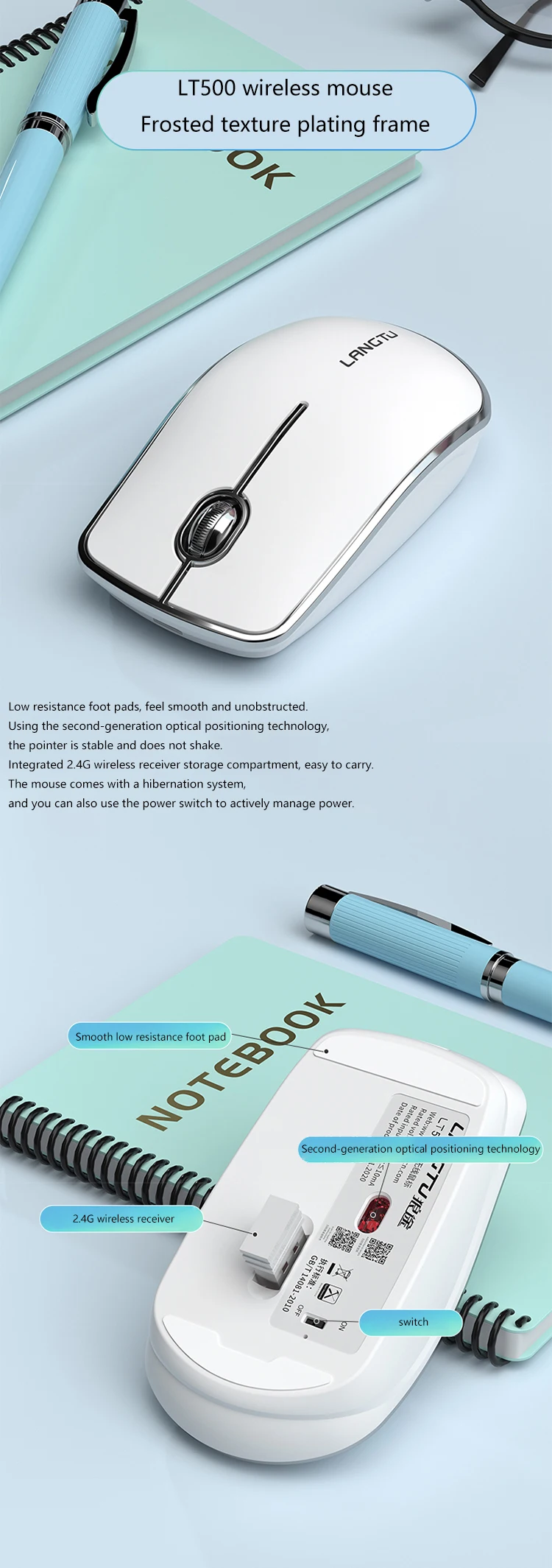 Мышь использует гладкие ножные подушечки с низким сопротивлением, технология оптического позиционирования второго поколения, беспроводной приемник 2,4G