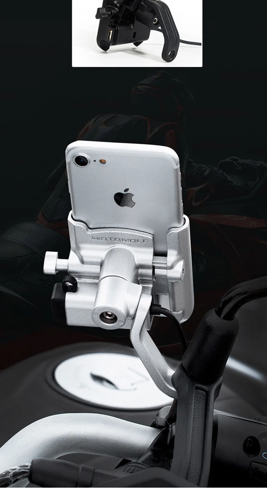 Держатель для телефона мотоциклетный из алюминиевого сплава с USB-з...