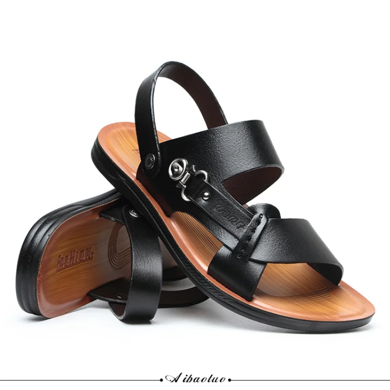 Мужские сандалии с открытым носком, пляжная обувь, Тапочки, кожаные...