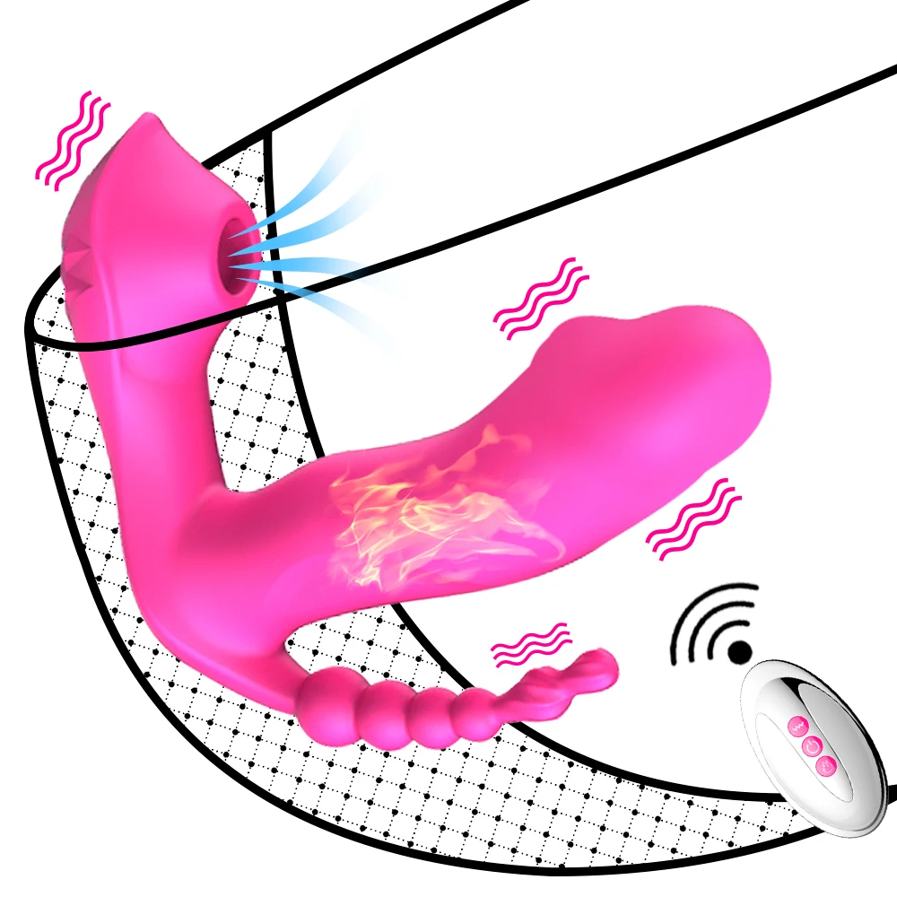 3 в 1 сосание вибратор 7 Режимы вибрации присоски анальный влагалище стимулятор клитора носимые всасывания полости рта эротические интимные игрушки для женщин