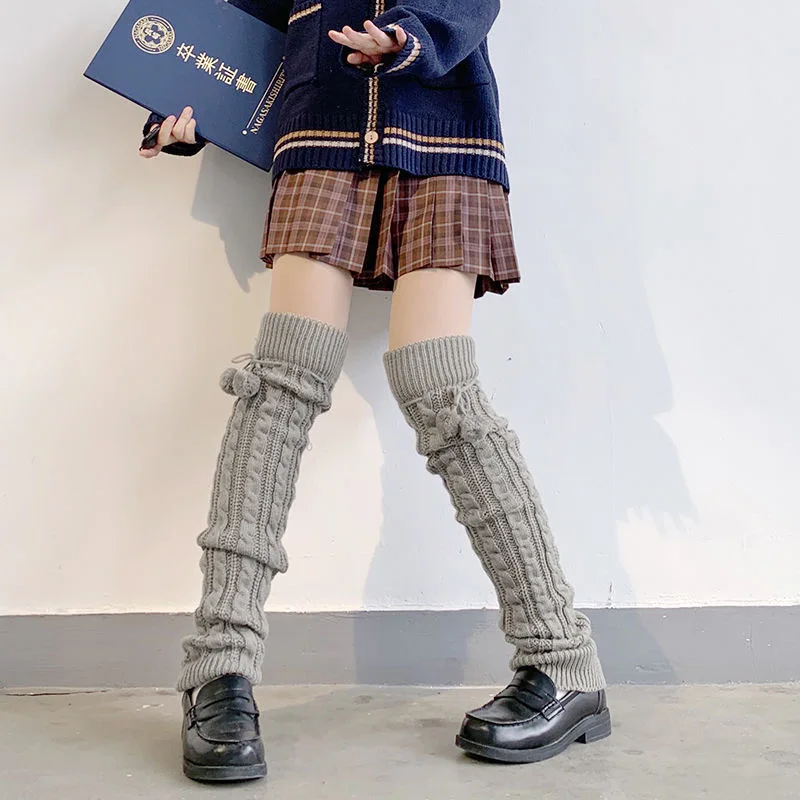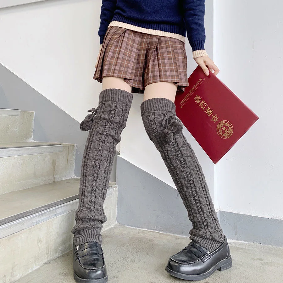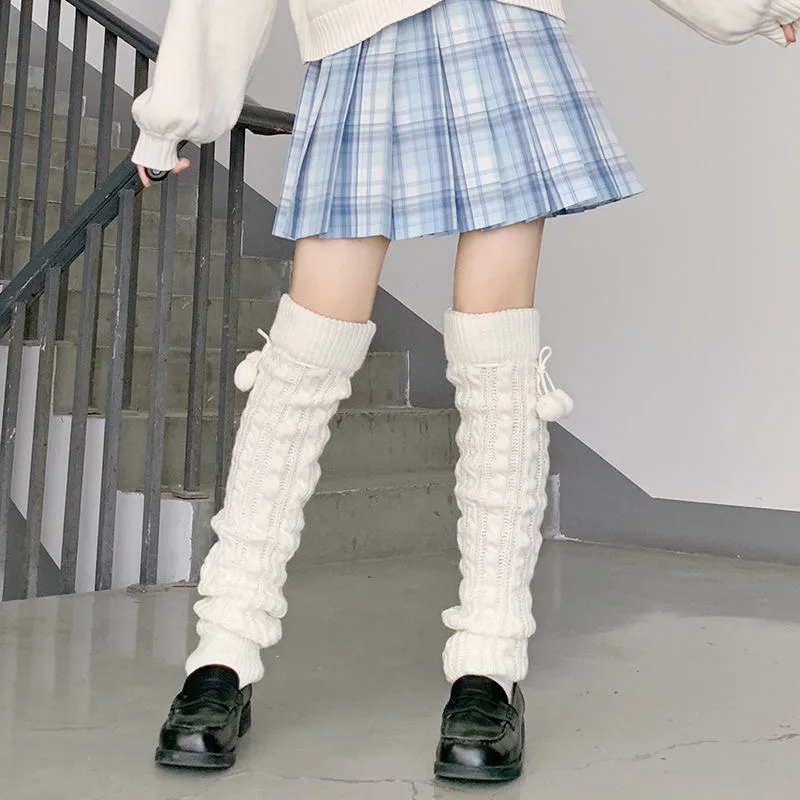 Женские теплые гетры выше колена 65 см, комплект белых пушистых носков JK, зимние плотные вязаные свободные сапоги, подарок для девушек