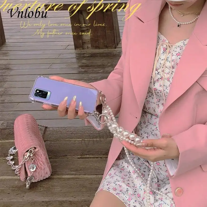 Жемчужный чехол для браслетов с ремешком и цепочкой для POCO X3 Pro...