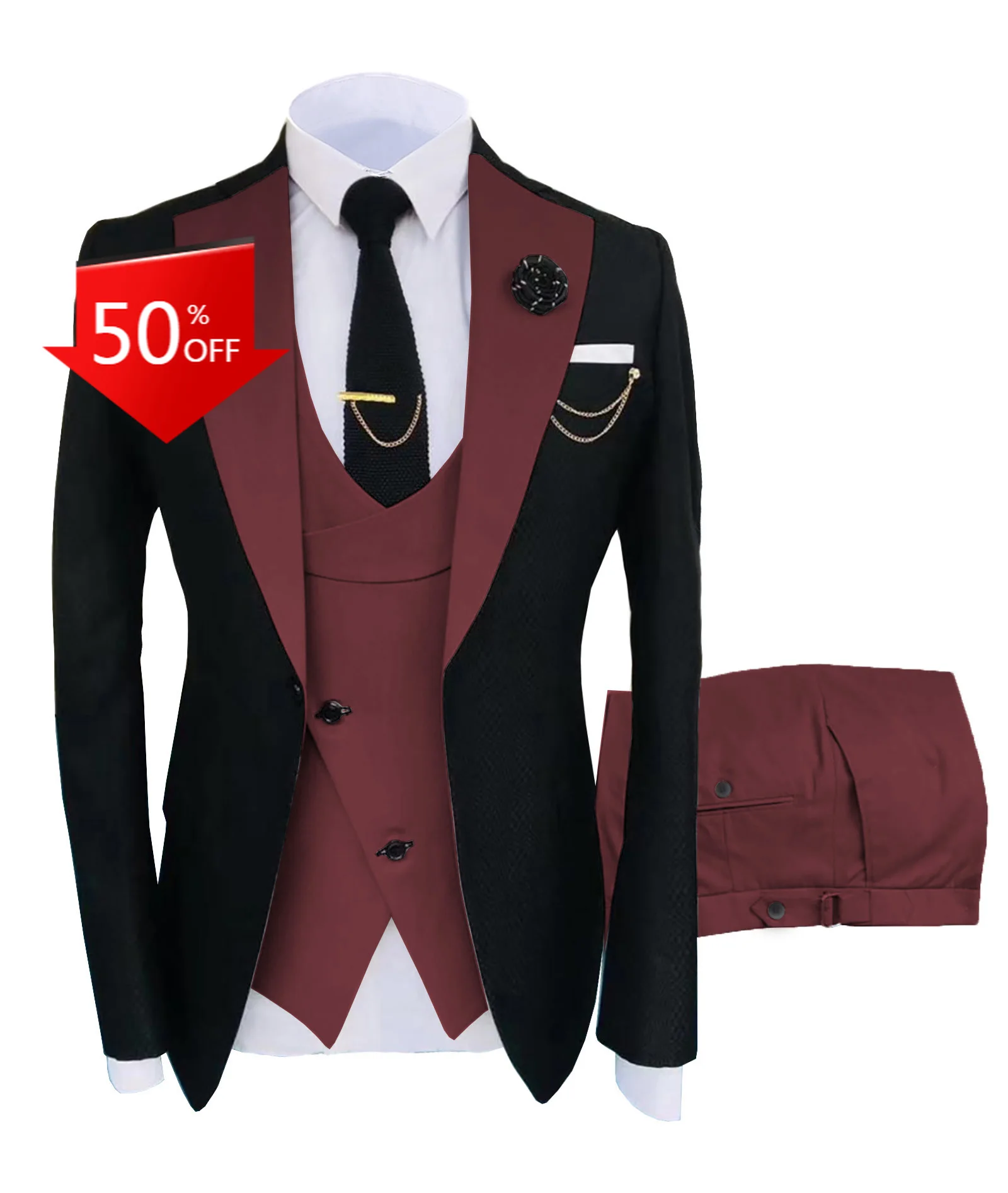 Модный мужской костюм из 3 предметов, деловые костюмы, блейзер + брюки + жилет для жениха на свадьбу, цвета шампанского бежевого