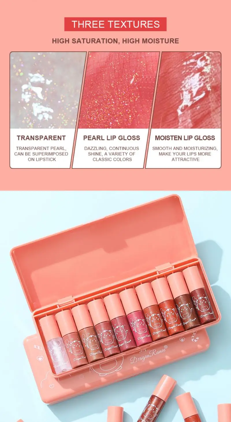 Жидкая губная помада 10 цветов, водостойкий увлажняющий стойкий Блестящий Блеск для губ, натуральный макияж, Желейный глазурь для губ, мерцающий макияж