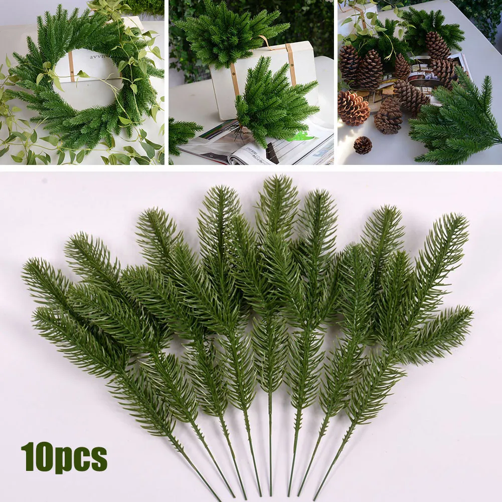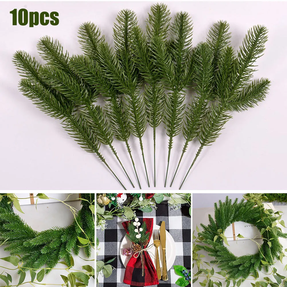 Искусственные ветки дерева 10 шт., игольчатые растения из пластика для венка, Рождественская елка, декор сделай сам, новинка 2021