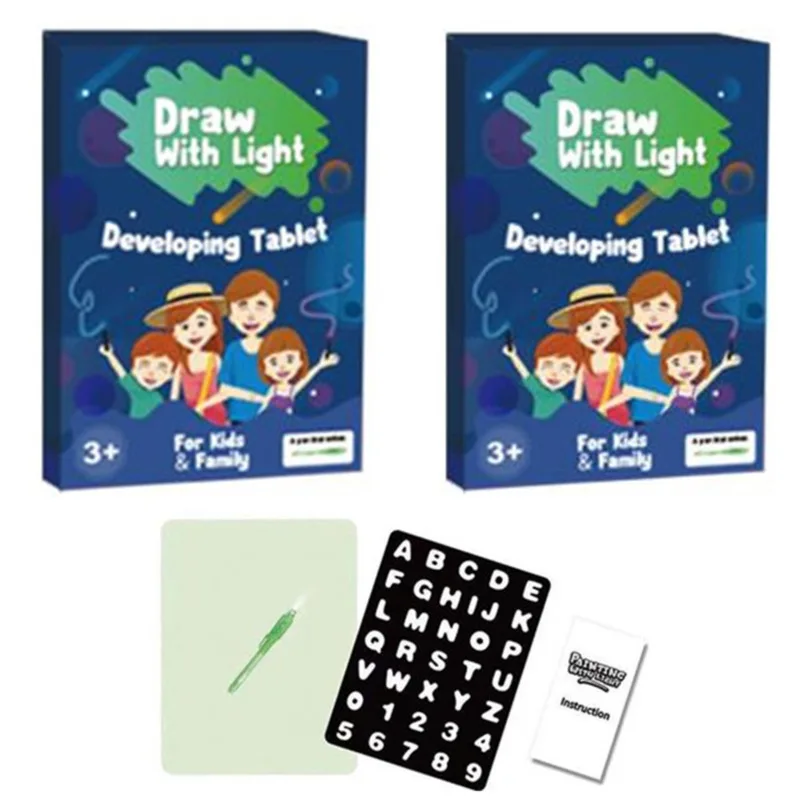 -Игрушка светится в темноте, предназначена для творческой деятельности, совместно выполняемой детьми и родителями. Он может развивать и развивать творческие способности и воображение детей, а также развивать их навыки письма, расчета и рисования. Пусть Дети веселятся на доске для рисования и помогут вашей домашней мебели или белым стенам избежать детских граффити-картин и разрушений.