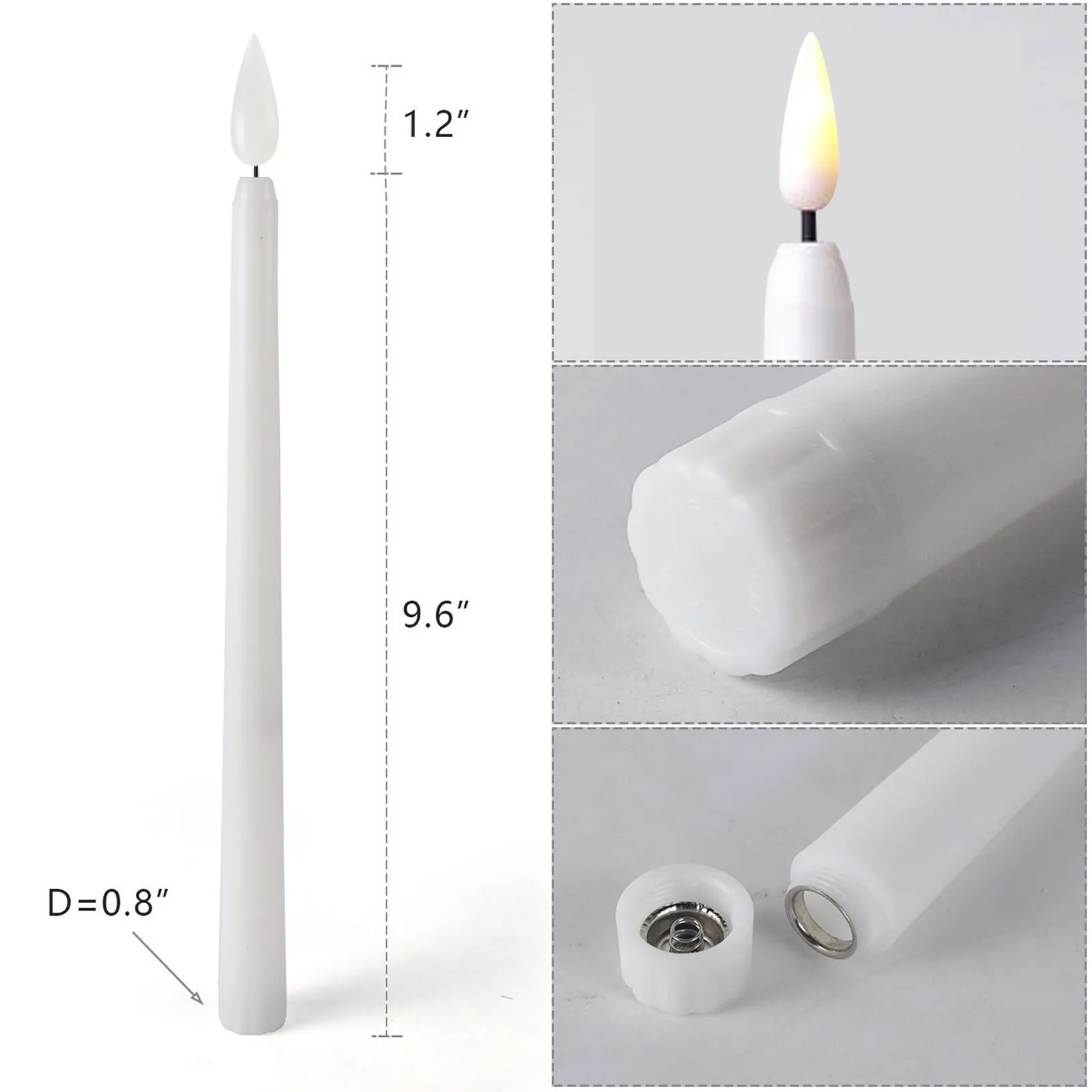 ★Реалистичный 3D фитиль: так как эти беспламенные конические свечи имеют 3D фитиль, они имеют более естественный мерцающий светильник. С настоящей текстурой воска, посмотрите и ведите себя более как настоящие свечи, добавьте тепло и элегантность в любое место, которое вы можете использовать, свадьбы, церковь, окна, канделябры, столов для сторовой и так далее.