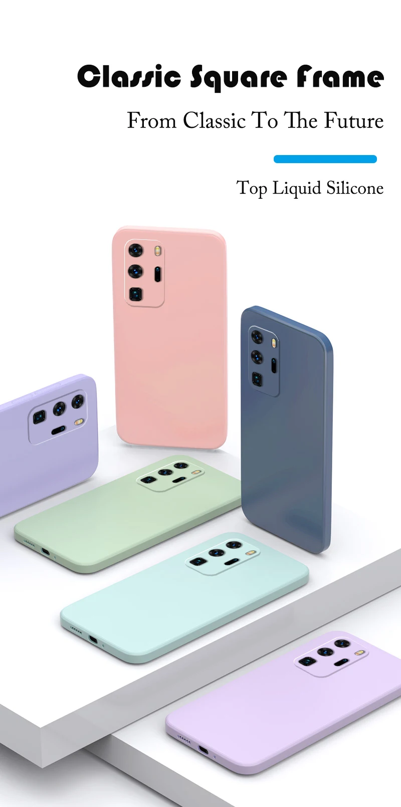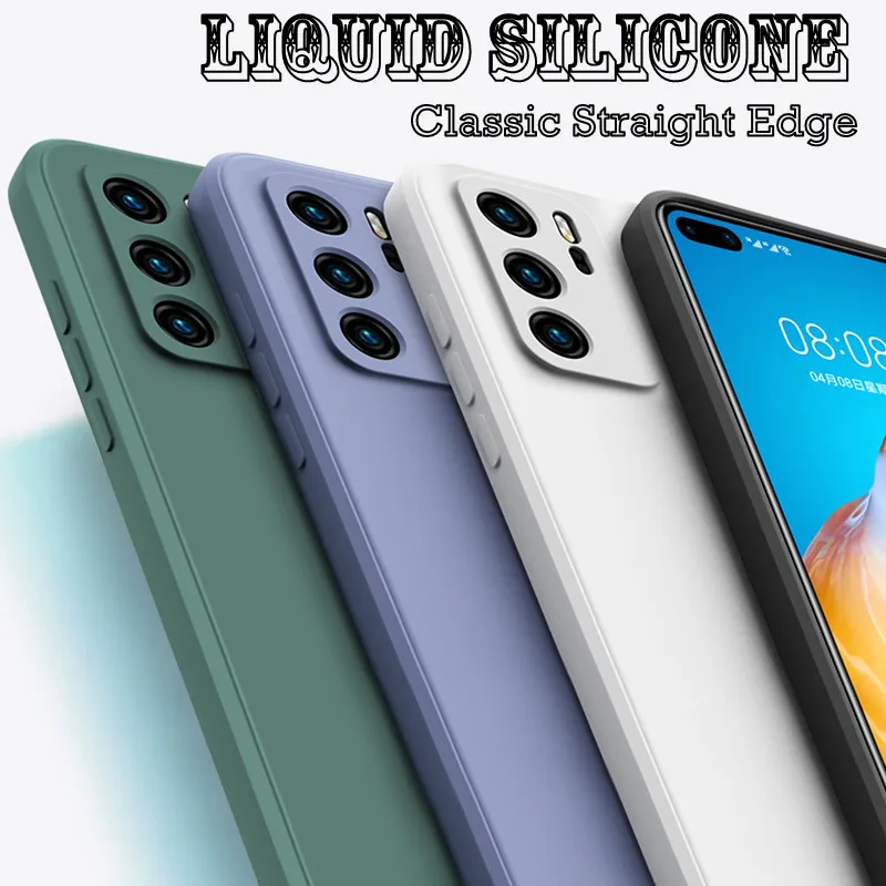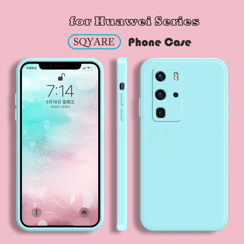 Классический мягкий жидкий силиконовый чехол для телефона с квадратной рамкой для серии Huawei + оригинальный ремешок