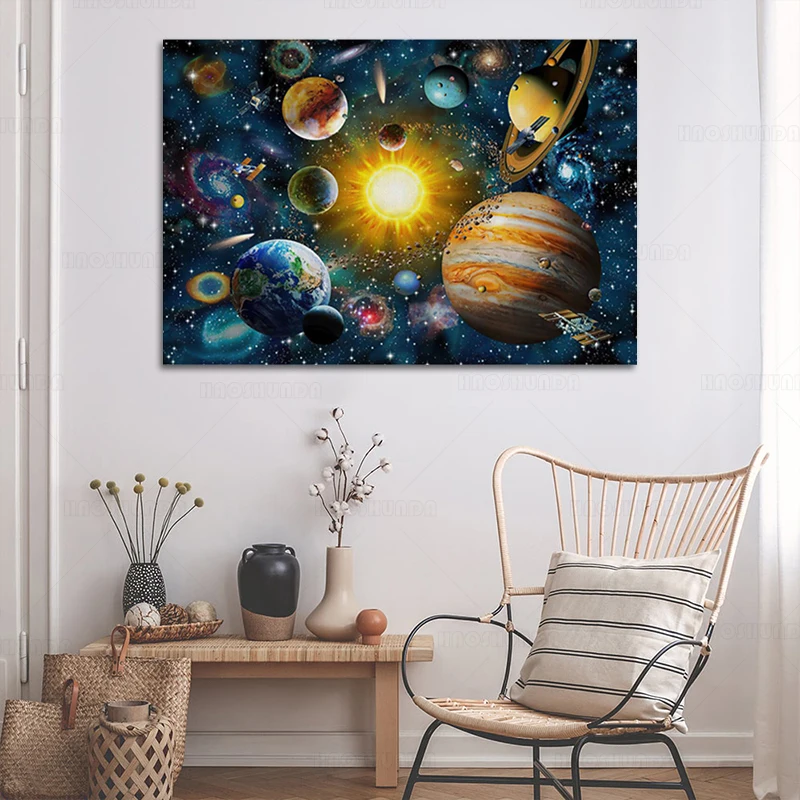 Современные восемь планетарных спутников, космический корабль, картины на холсте, плакаты, печать, Настенная картина для гостиной, Настенный декор