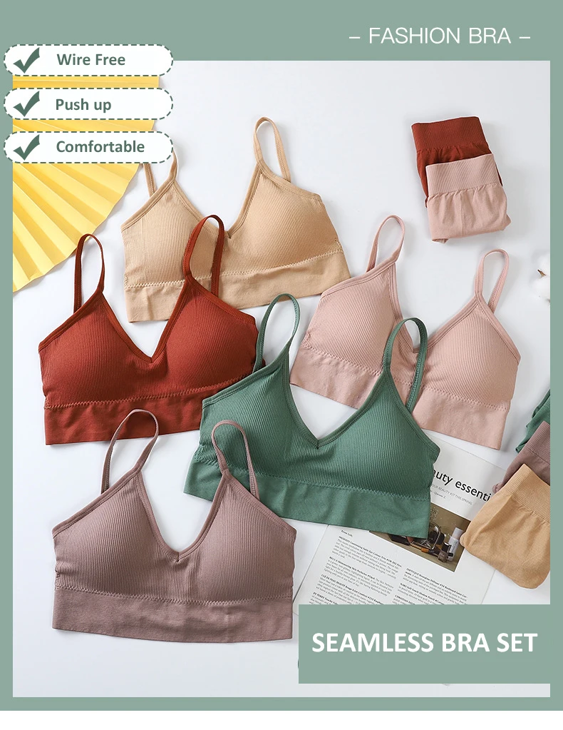 Комплект женского Бесшовного нижнего белья из бюстгальтера пуш-ап и трусов