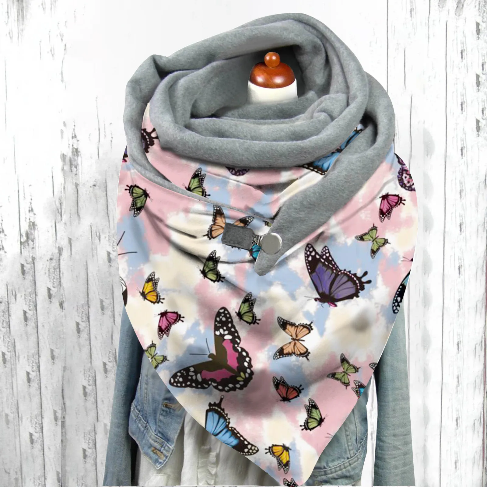 Зимние теплые шарфы, шали, женские, повседневные, толстые, с художественным принтом на пуговицах, мягкие, теплые шарфы, шали, Шарф Женский 40 #