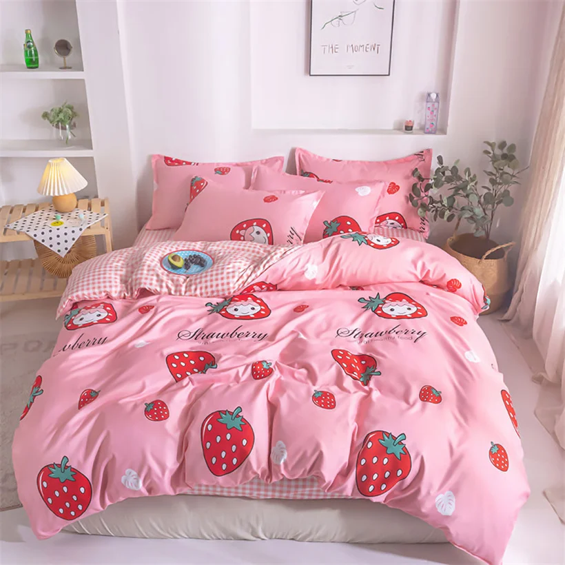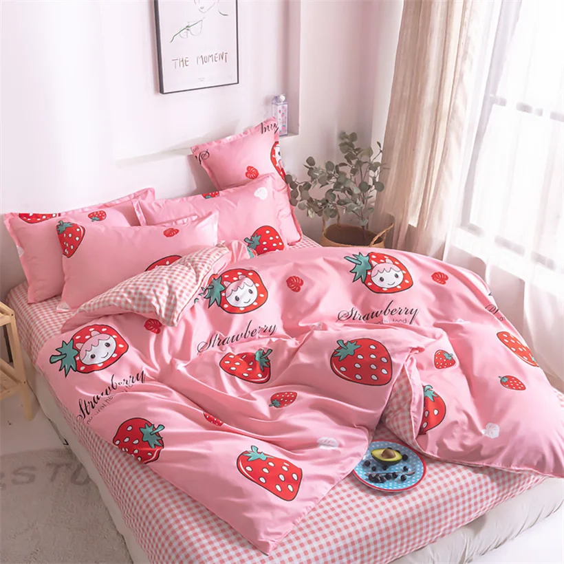 Постельное белье, розовая клубника, постельное белье, простыни, мил...