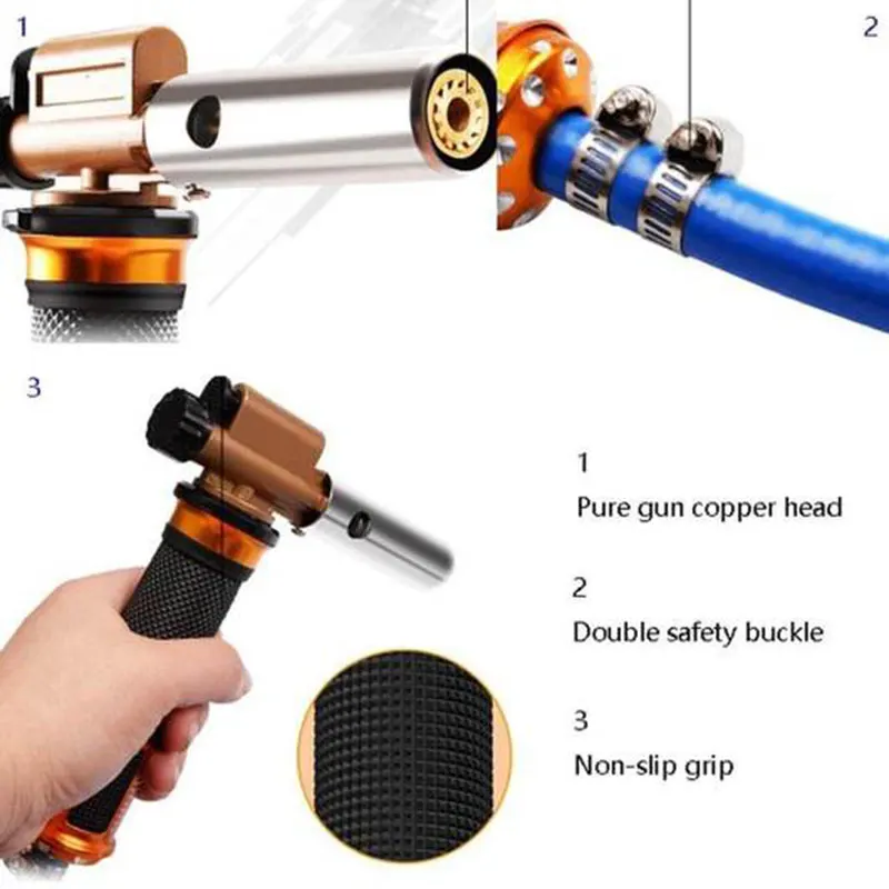 1. Отличное управление: Автоматическое пусковое зажигание позволяет очень легко зажечь и потушить пламя простым щелчком. Конструкция мгновенного включения/выключения разработана для максимального удобства, поэтому вам не нужно каждый раз поворачивать регулировочную ручку. Регулируемая ручка управления пламенем может свободно размер пламени, так что вы можете легко переключаться между различными задачами.2. Максимальная безопасность: замок безопасности предназначен для предотвращения случайного зажигания, поэтому вам не придется беспокоиться о случайном зажигании пламени.3. Эргономичная ручка обеспечивает долговечность и надежность, обеспечивая при этом удобство при выполнении трудоемкой задачи.4. Универсальный в любых условиях работы, удовлетворяет потребности как профессионалов, так и поклонников DIY в любых обстоятельствах, независимо от того, насколько большая или маленькая работа.5.100% удовлетворение: если у вас есть какие-либо вопросы, пожалуйста, свяжитесь с нами. Мы сделаем все возможное, чтобы помочь вам.