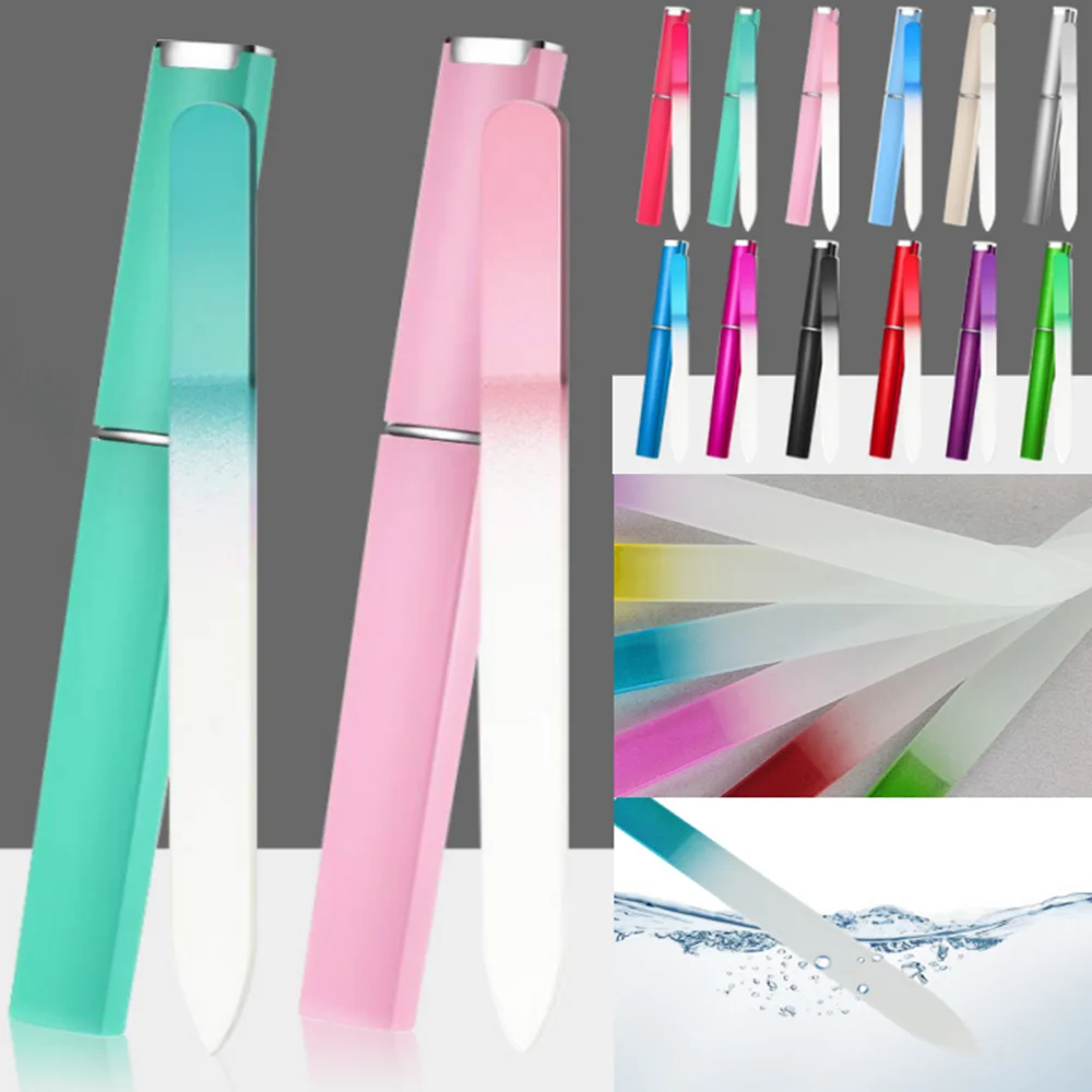 Стеклянная пилка для ногтей премиум-класса с чехлом, Хрустальная пилка для ногтей, профессиональный салонный Маникюрный Инструмент для натуральных ногтей, подарок для женщин и девочек