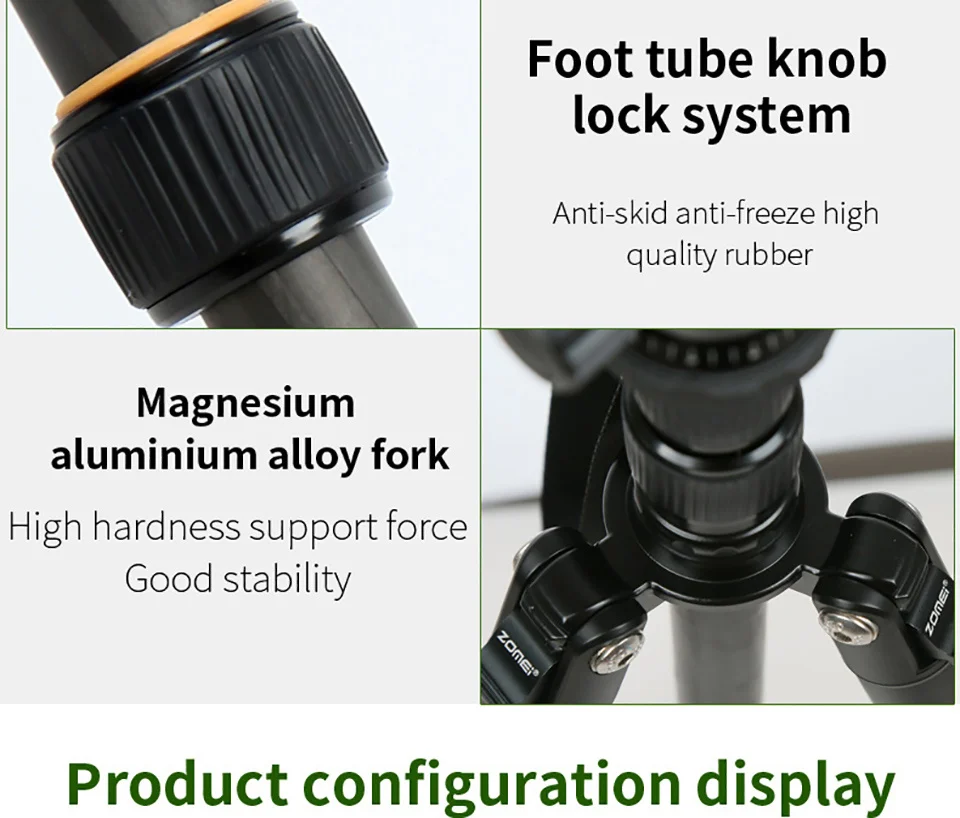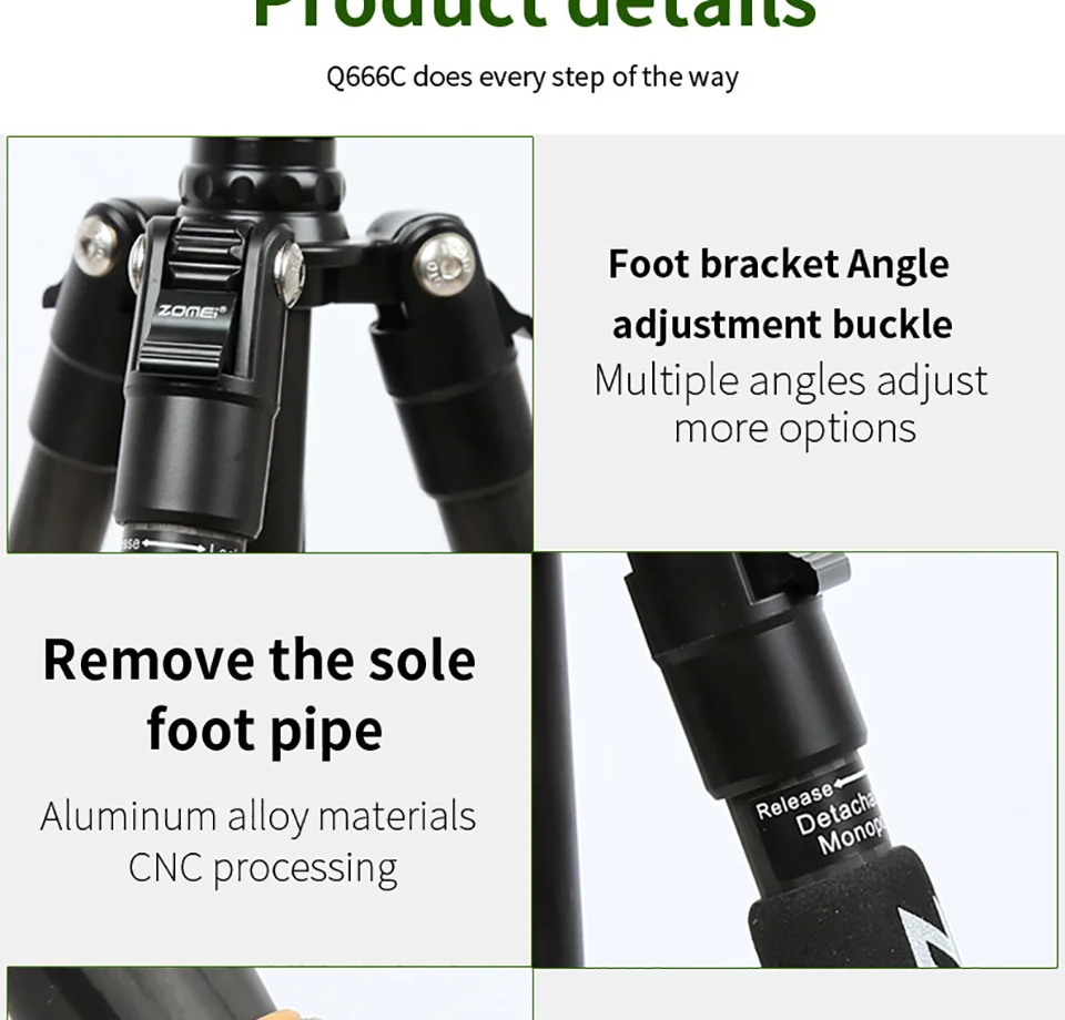 Портативный профессиональный штатив ZOMEI Q666 для камеры, алюминие...
