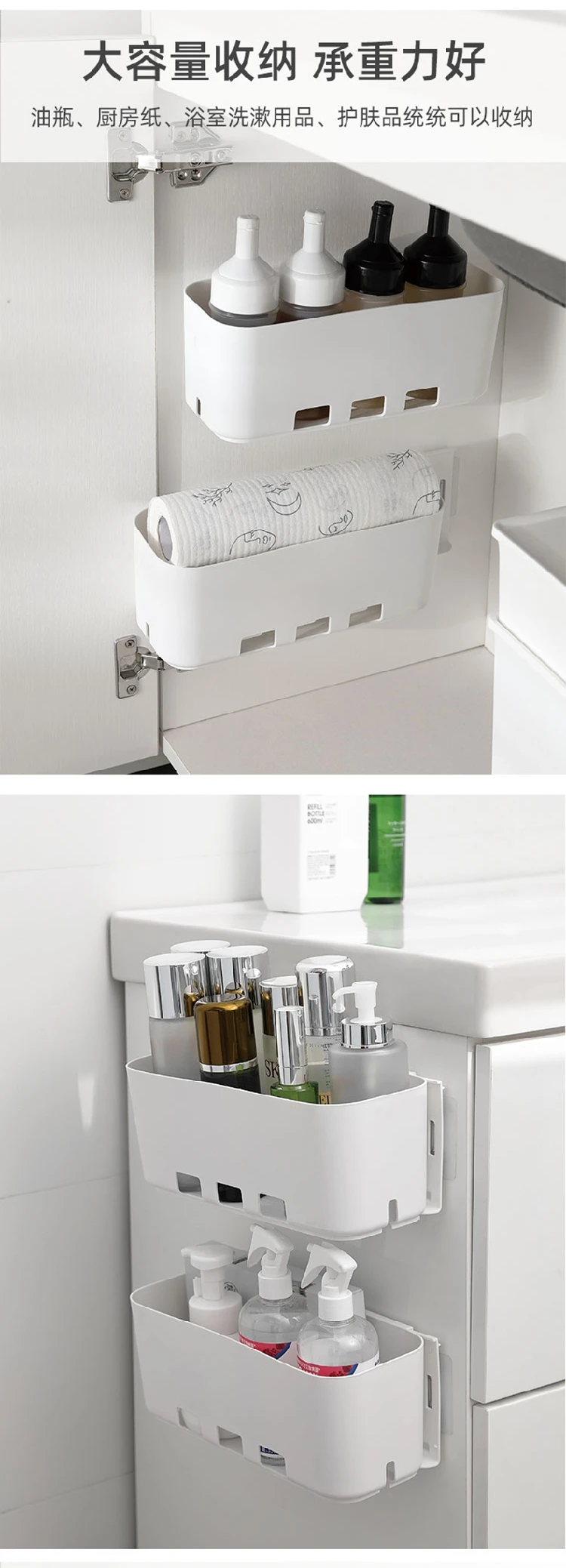 Особенности:★Прочный полипропиленовый материал и может загружать не менее 5 - 10 кг товаров, не выпадает★Без штамповки, с задней клейкой установкой, сильной загрузкой и поддерживающей мощностью и без риска падения с стены★Подходит для нескольких мест, для кухни органайзер для специй, хранения аксессуаров для ванной комнаты, палочек для еды и вилок и так далее★Экономия пространства, может быть установлен в угловой зазор или морозильник и стиральная машина сторона, сделать полное использование каждого дюйма в вашем доме посылка включает в себя: 1 корзина для хранения коробка висячая корзина для хранения под раковиной Органайзер стойки, кухонная бутылка для специй органайзер и бытовые мелочи, экономия пространства