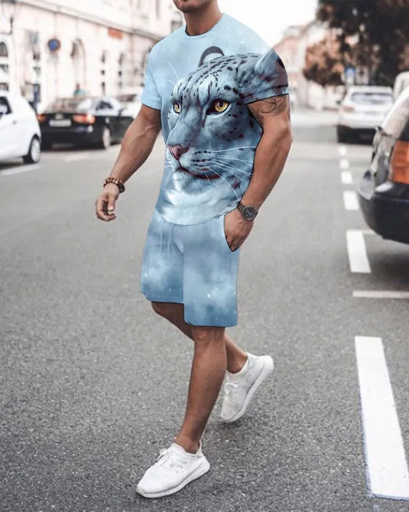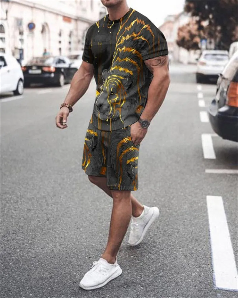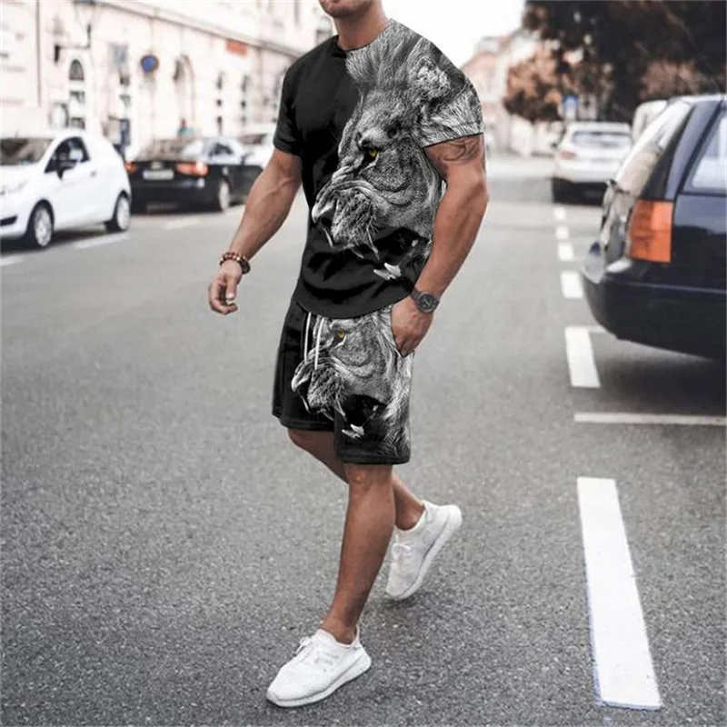 Мужские летние шорты в европейском и американском стиле, свободная повседневная футболка с короткими рукавами и 3d-цифровым принтом, спортивные костюмы для отдыха