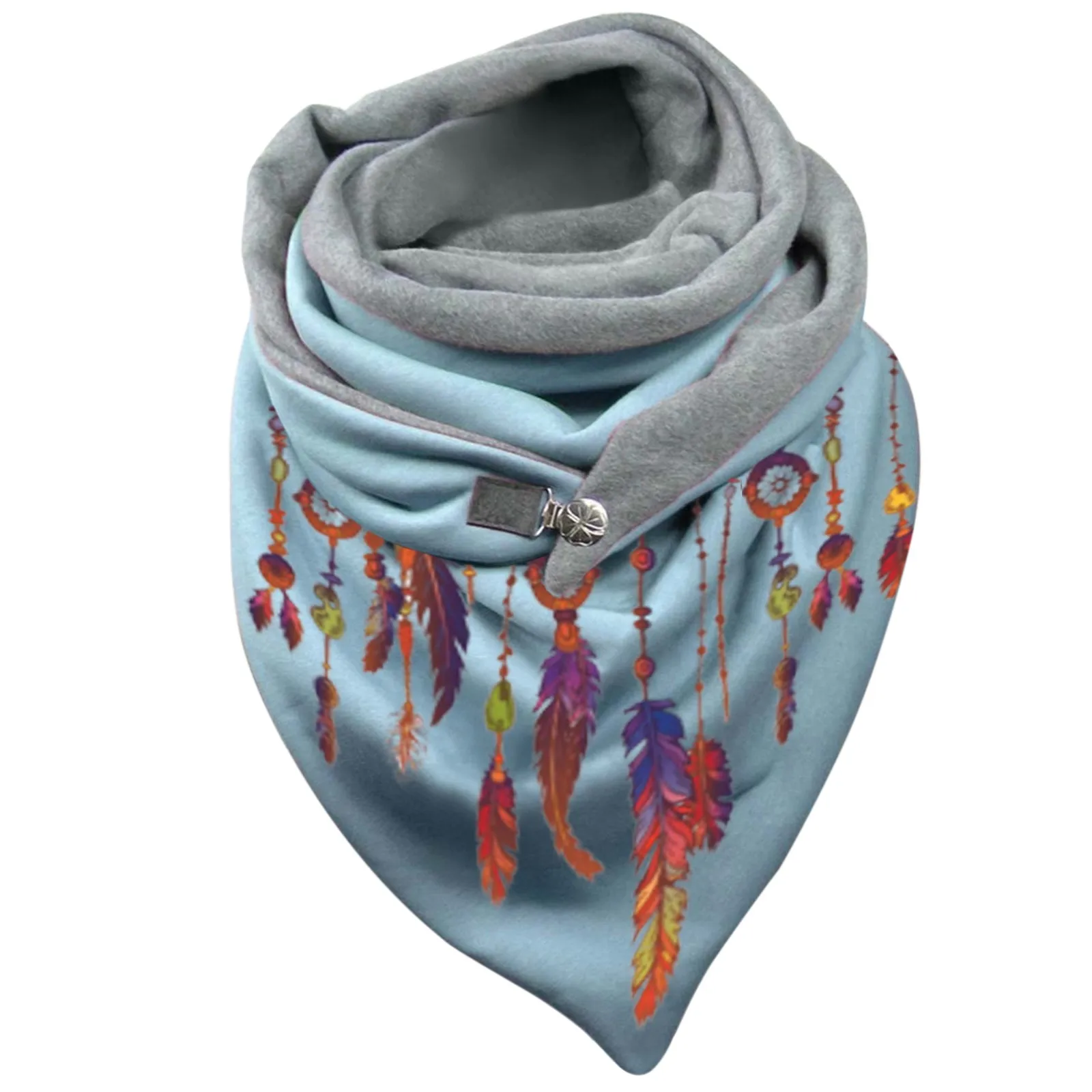 Женский хлопковый теплый шарф на пуговицах с принтом «Лошадь» и «Роза»