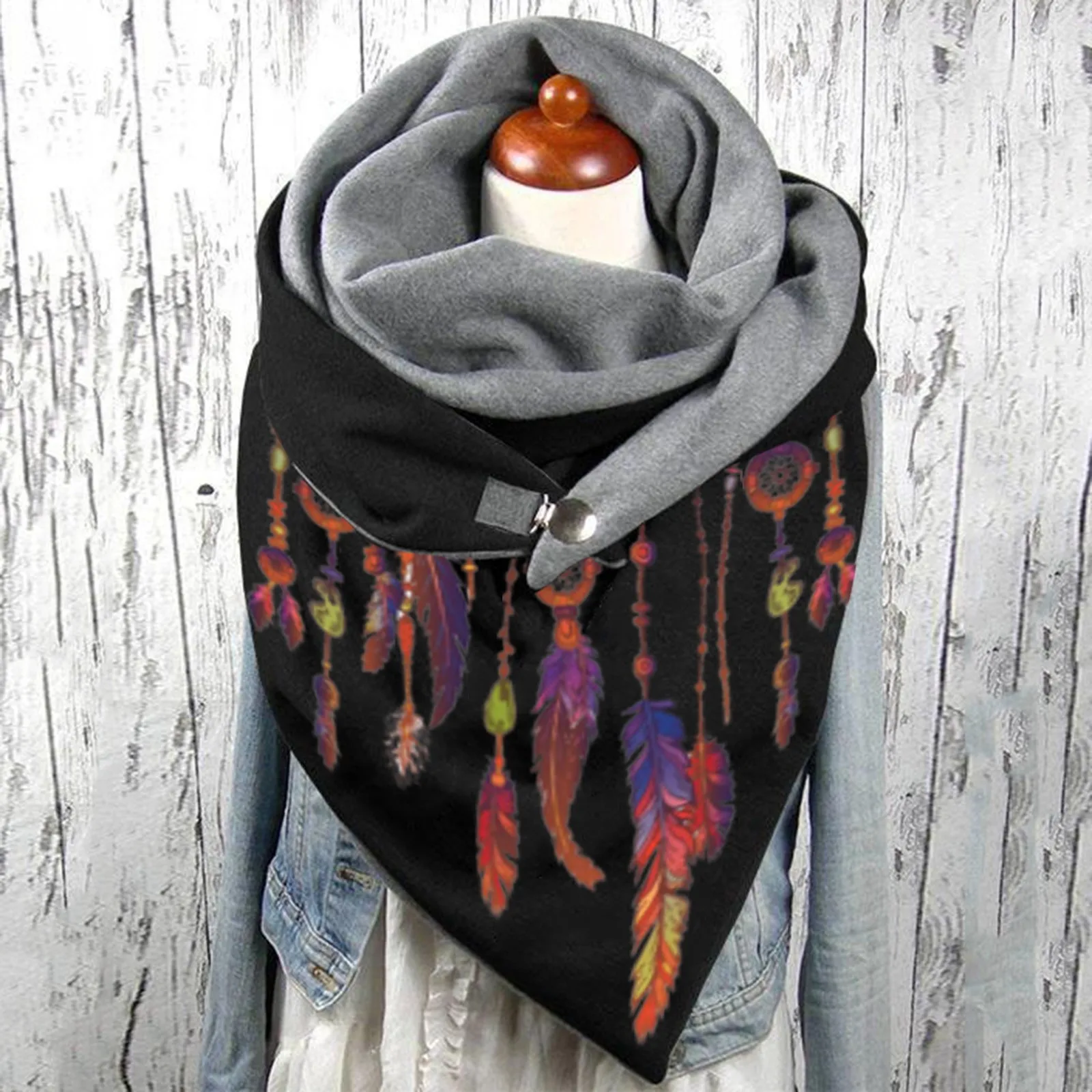 Шаль с бахромой и принтом в виде перьев раньше хлопковый ретро теплый двухслойный ветрозащитный роскошный тюрбан дизайнерский шарф
