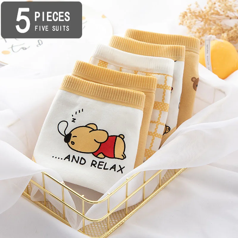 5 комплектов женского нижнего белья из чистого хлопка, дышащее нижнее белье для девочек со средней талией, милое и милое нижнее белье для девочек с героями мультфильмов